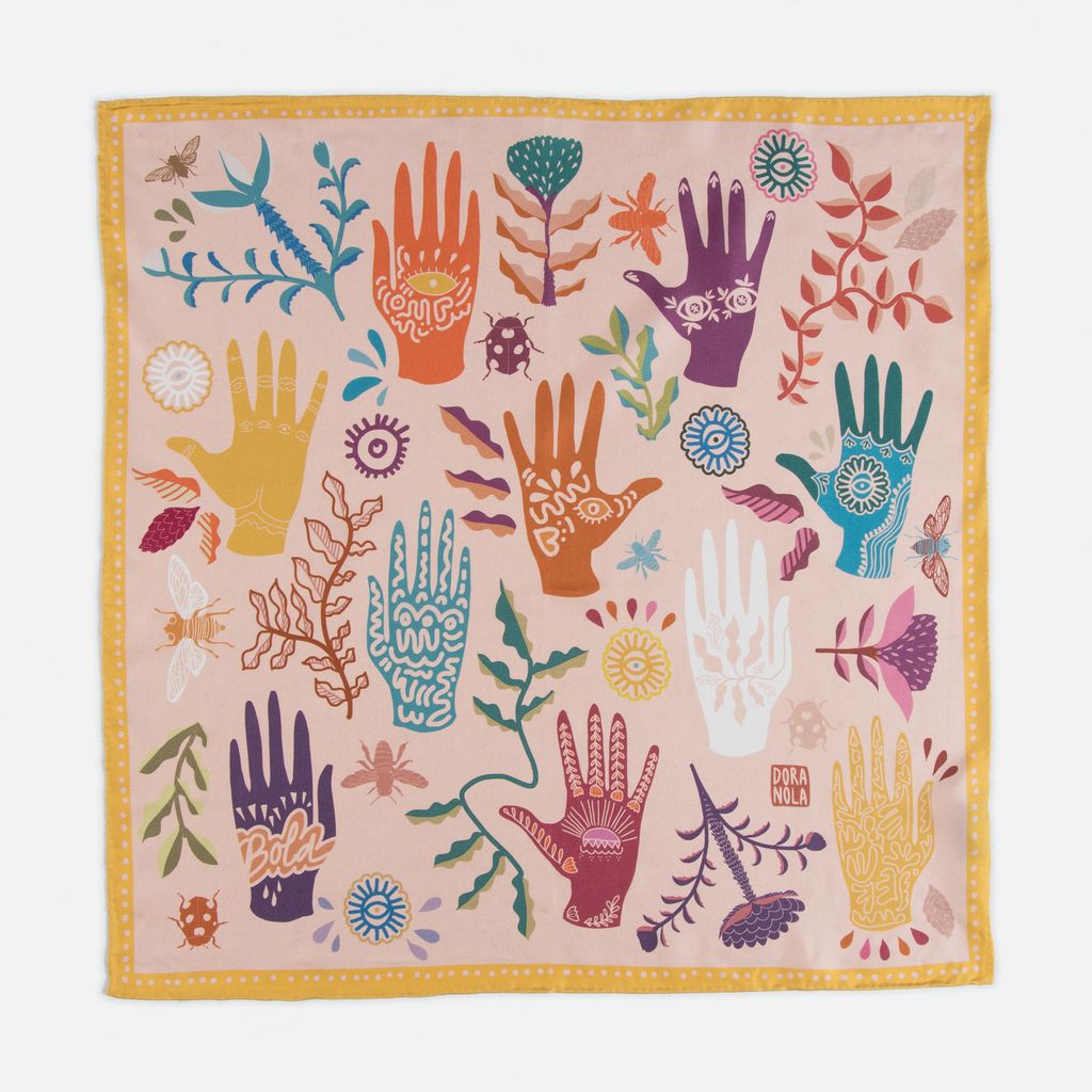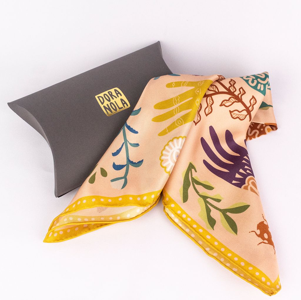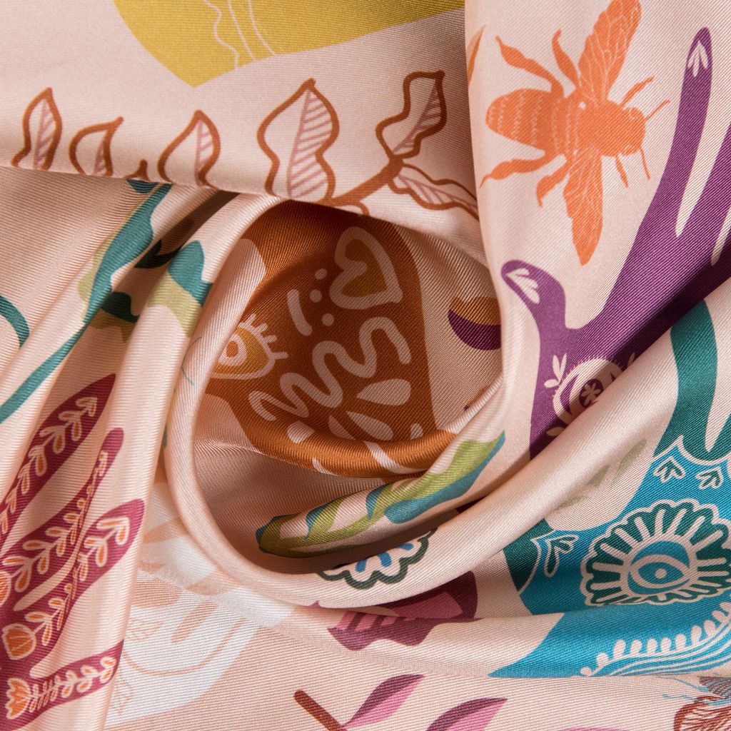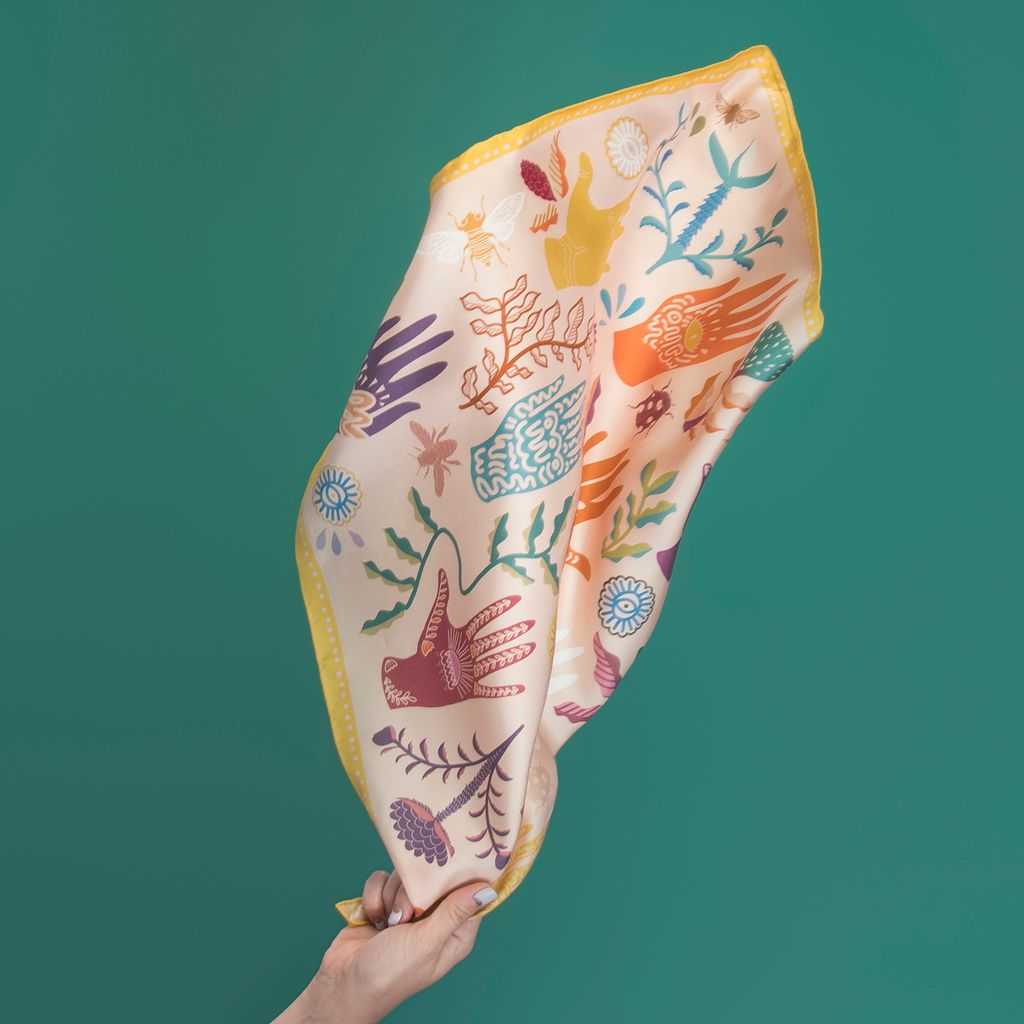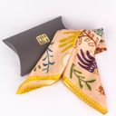 Tel un cabinet de curiosités, le motif Gardien regorge de symboles et de surprises à découvrir. Polyvalent et luxueux, confectionné en 100 % soie avec ourlets roulés à la main.