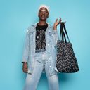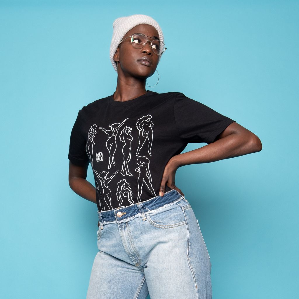 On <3 les t-shirts graphiques! Tellement faciles à porter et à agencer. Ce chandail est orné d'un design de silhouettes toutes en courbes et du logo Dora Nola. Un tissus flexible, doux et facile d'entretien.