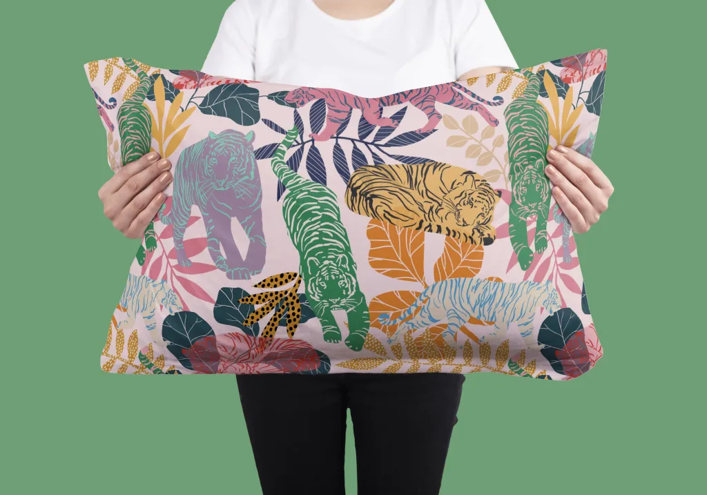 Taie d'oreiller format Queen avec un joli imprimé Dora Nola! Ajoutez une touche de 'pop' à votre literie, tout en bénéficiant des multiples avantages de dormir sur de la luxueuse soie de mulberry.