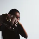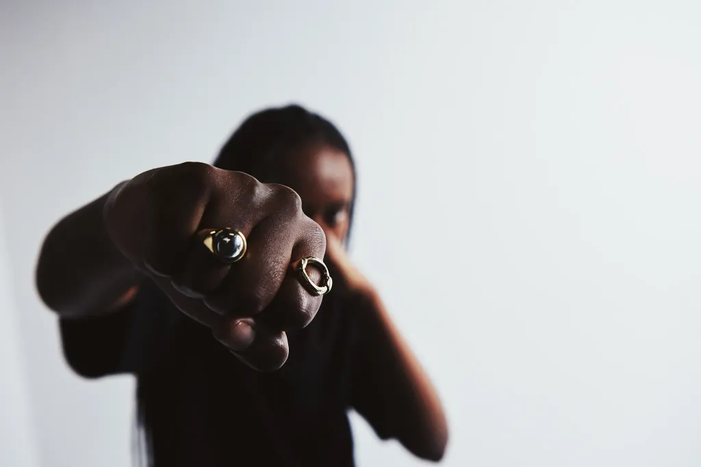 Chevalière revisitée, elle fera également office de miroir de poche. Alliage de bronze jaune et d'argent.