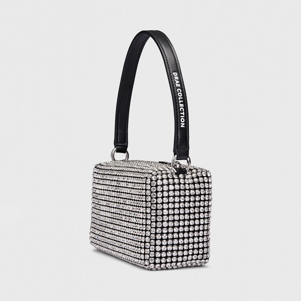 Prouvant que l'esthétique de DRAE COLLECTION ne connaît aucune limite, le sac Riley est présenté emballé avec les embellissements en cristaux de qualité AAA signature de DRAE. Le sac à main est livré avec une sangle transversale argentée, parfaite pour votre prochaine soirée comme pour le brunch du lendemain. Regardez attentivement les poignées en cuir végétalien, où vous apercevrez le logo de la marque. Sans oublier que le sac à poignée supérieure possède un compartiment interne pour contenir des cartes ou de la monnaie.