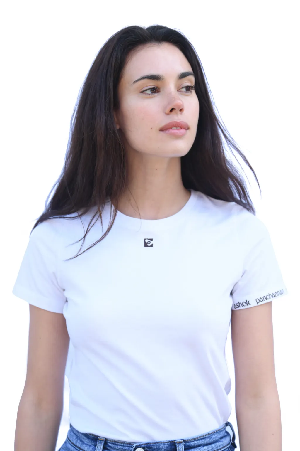 Soyez chics avec notre t-shirt signature en coton organique régénératif, conçu de manière éthique par Oshadi, dans sa ferme écoresponsable en Inde. Présentant les noms des artisans impliqués brodés sur la manche gauche, chaque vêtement ultra-doux témoigne subtilement du talent, du soin et du savoir-faire des personnes derrière la production.