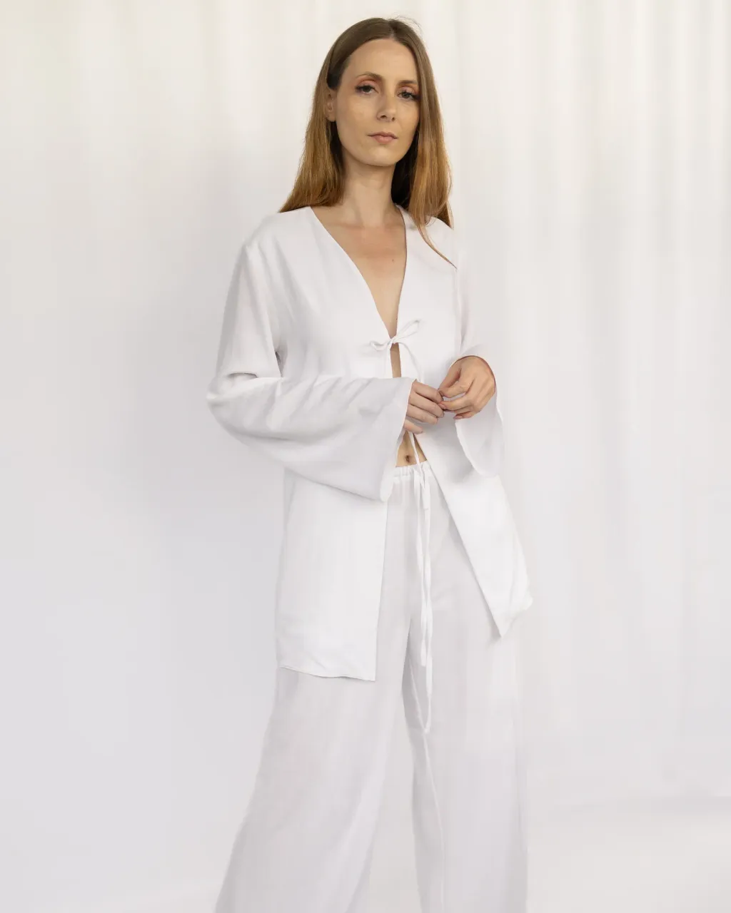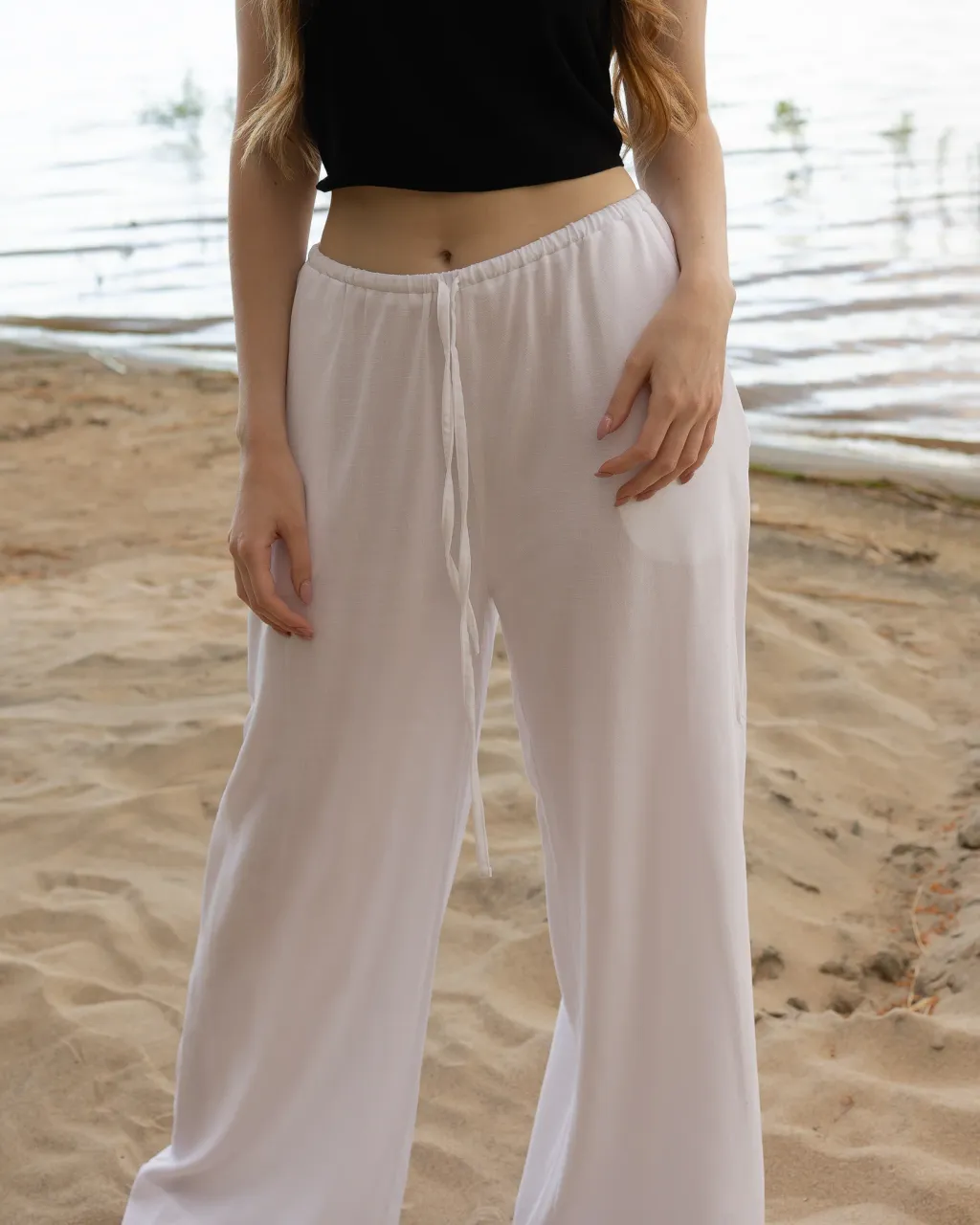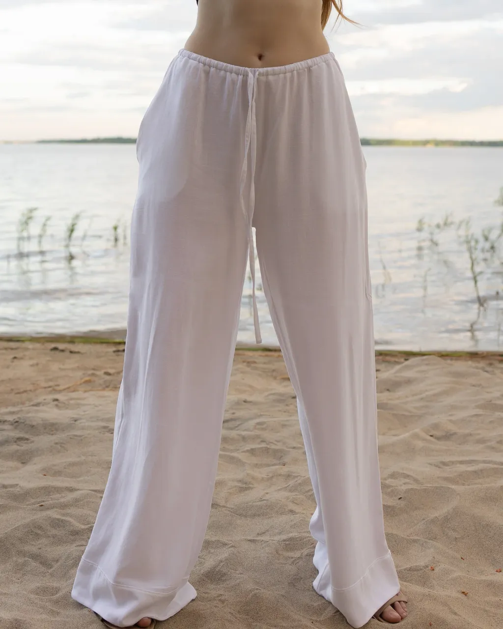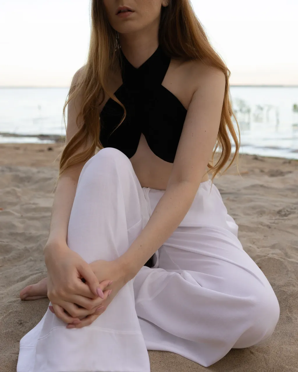 Aussi élégant que décontracté Flo s’adapte à toute situation. Le pantalon fluide tombe magnifiquement sur le corps en offrant le confort ultime. L’élastique, combiné à son cordon à la taille permet un ajustement parfait.