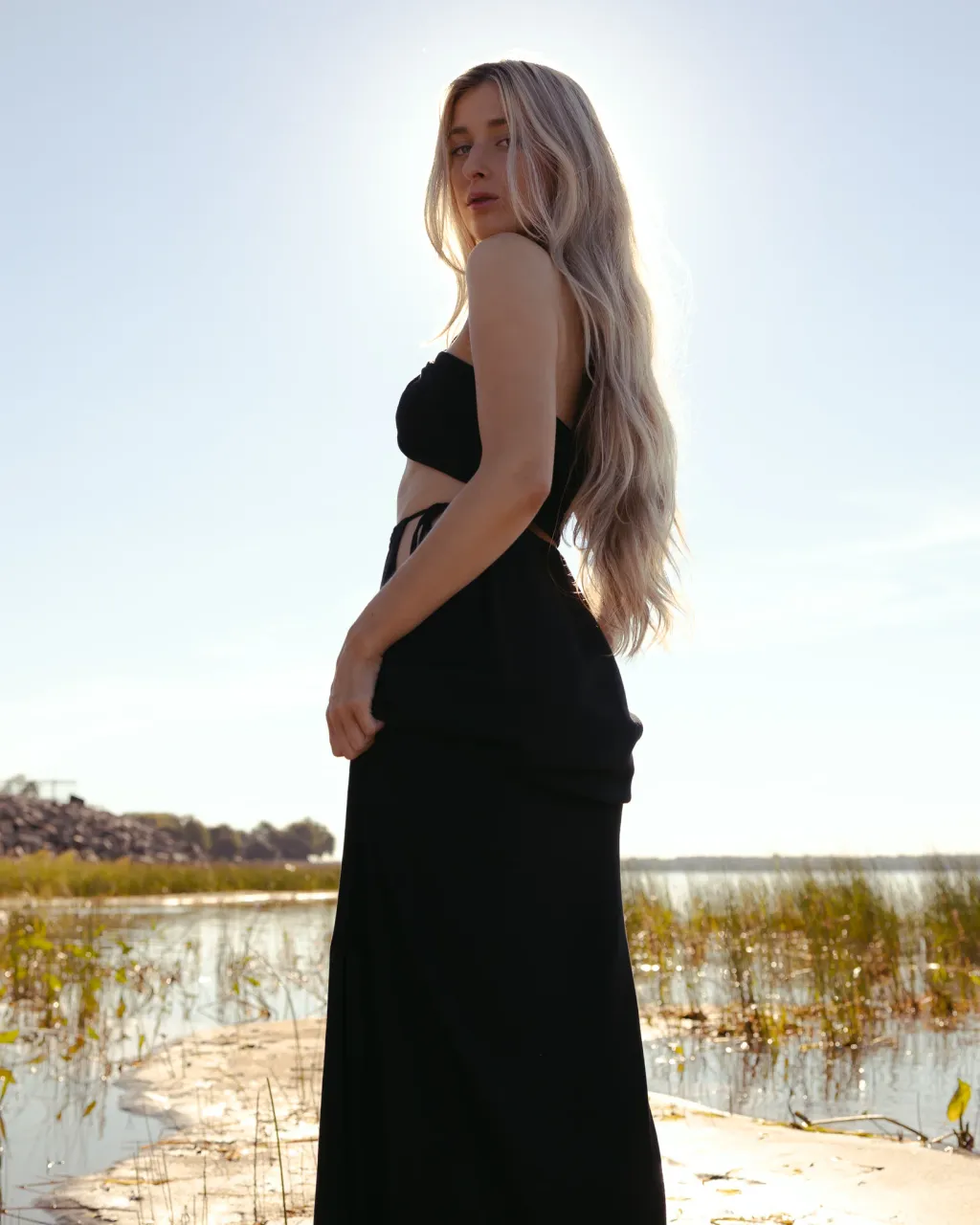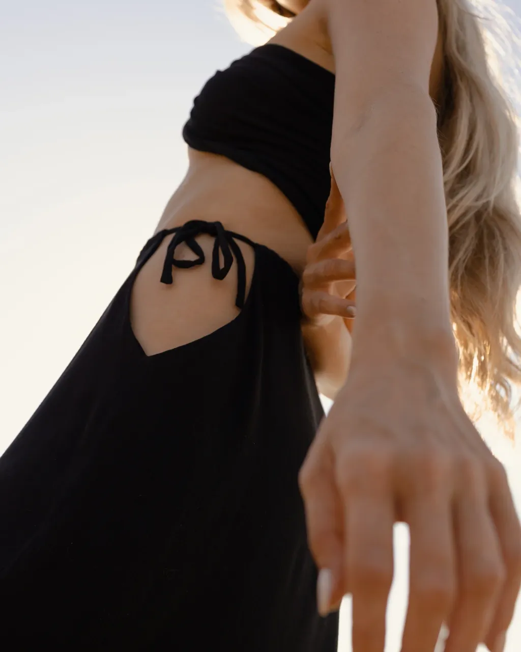 La jupe Hera est aussi confortable qu’élégante. Les cordons à la taille permettent de l’ajuster selon vos besoins en plus de complimenter à merveille les ouvertures au niveau des hanches de cette pièce. Les fentes au bas de la jupe laissent entrevoir le bas de la jambe tout en permettant confort et mobilité de la jupe longue. Hera, qui est entièrement doublée, assure une opacité totale.