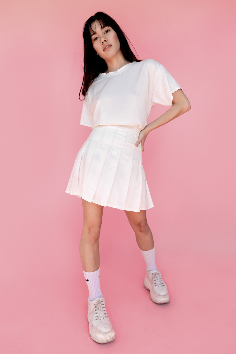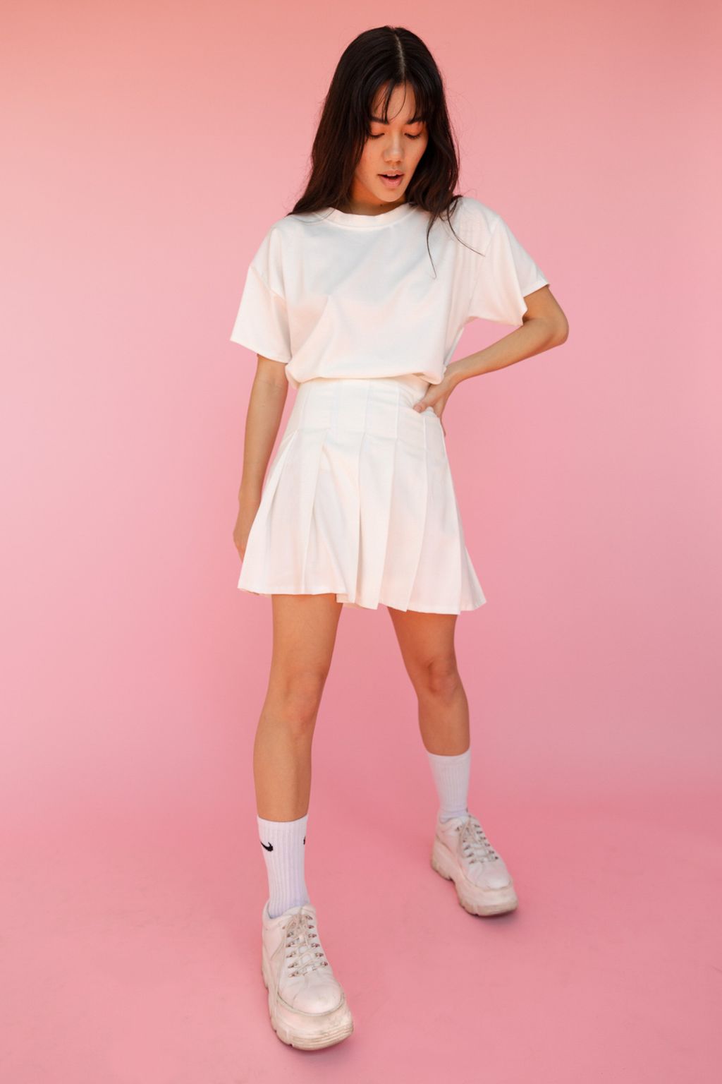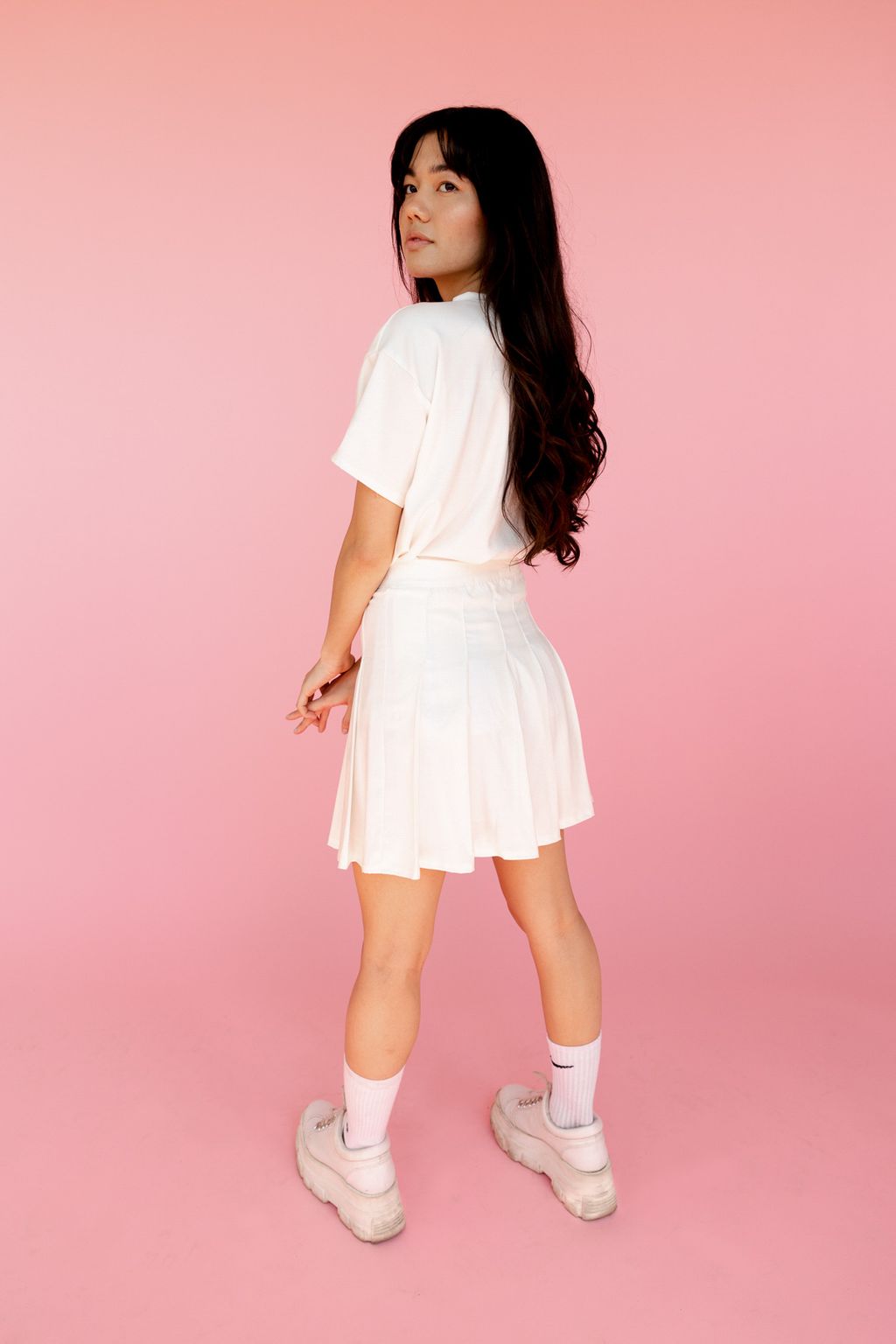 Une jupe d'inspiration Tennis avec bande de taille pour un maximum de confort et une fermeture à glissière invisible sur le côté pour que la jupe te fit parfaitement! Tu peux la porter avec des sandales ou des sneakers pour un look plus sport!