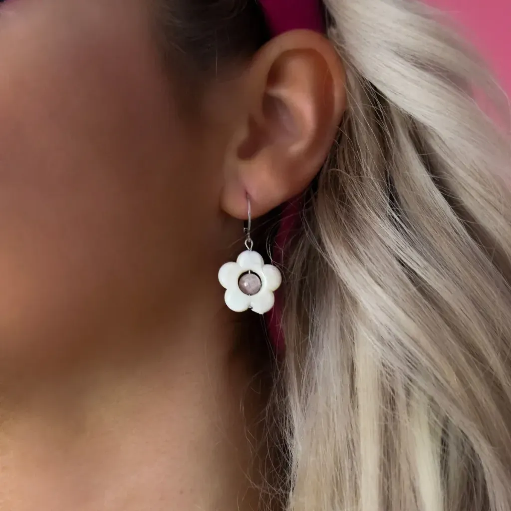 Voici nos boucles d'oreilles FLOWER DOLL de la collection inspirée de Barbie. Composées de perles de verre et de fleurs irrésistibles en acrylique, ces pièces uniques incarnent l'essence de Barbie et ne manqueront pas de faire tourner les têtes.