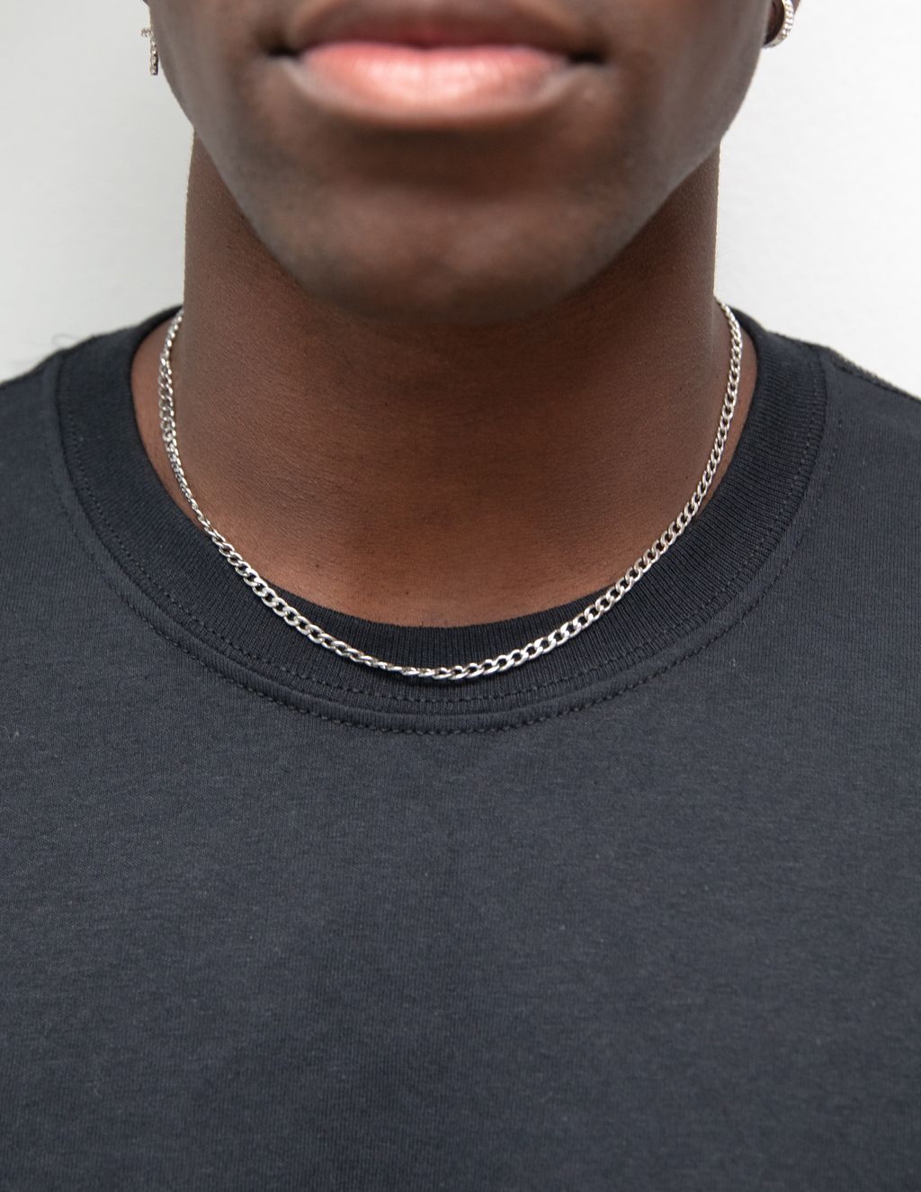 Le collier CLASSIC est composé d'une chaîne cubaine en acier inoxydable dorée ou argenté.