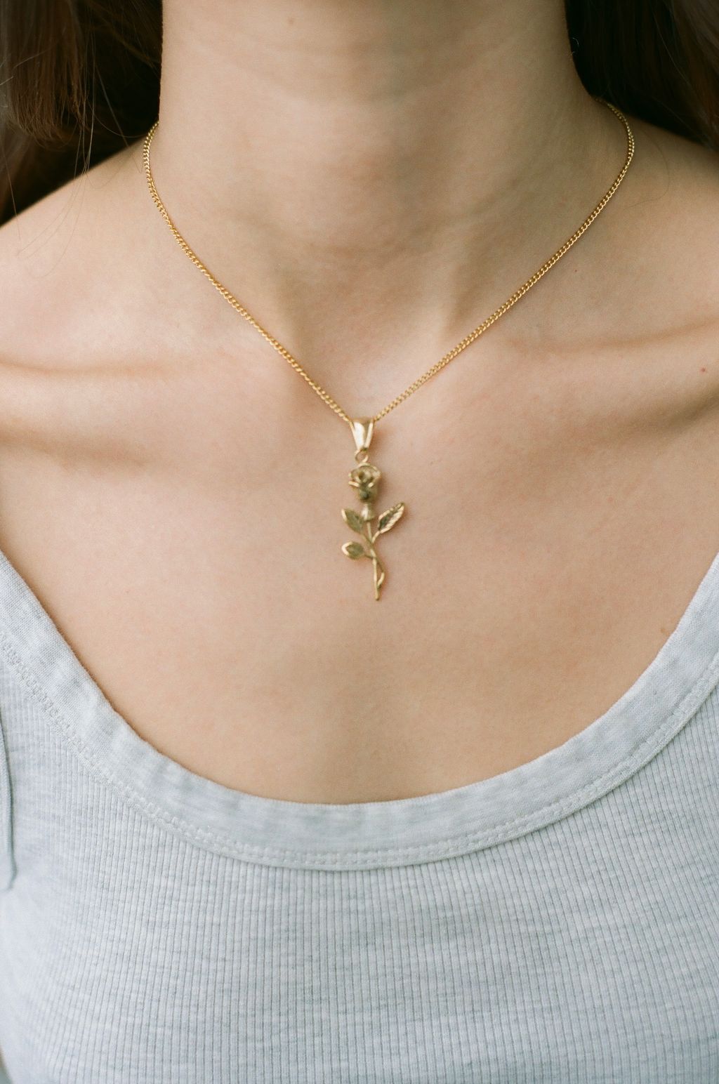 Le collier MUSE est fait en acier inoxydable avec un pendentif de rose.