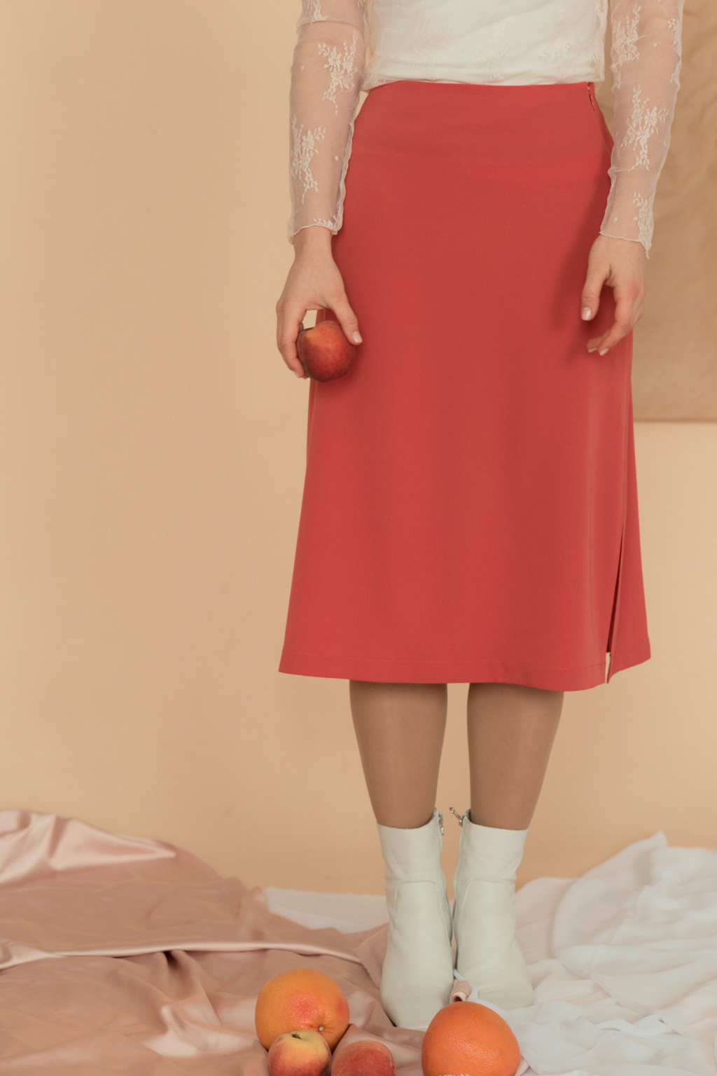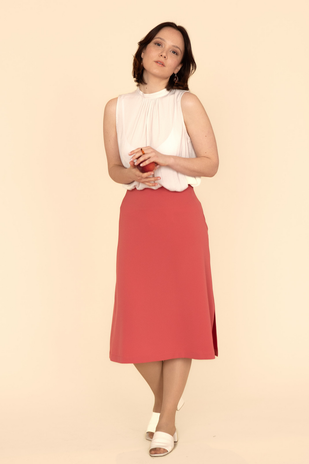 Description - Notre jupe midi Blush Pêche est l’addition parfaite à votre garde-robe d’été. En plus d'être confortable, son tissu est d'une couleur vibrante qui s'agencera parfaitement avec votre blush préféré. Offerte en version midi et maxi, cette jupe est fabriquée et conçue au Québec. Sa fente sur le côté ajoute une touche d'élégance et de fluidité.