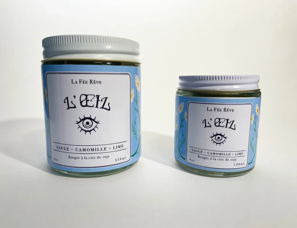 Bougie à la cire de soya de 250mL ou 120mL, au parfum frais de sauge, camomille et menthe