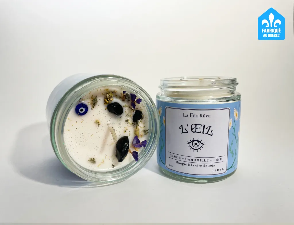 Avec son talisman de protection et ces plantes purifiante, la bougie L'Oeil a été élaborée pour favoriser le renouvellement des énergies positives de votre maison. Son parfum mentholée vous apportera une sensation de fraicheur et mettra en circulation les énergies en vous et autour de vous.