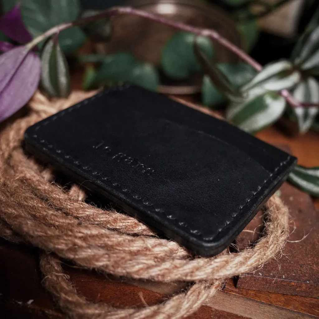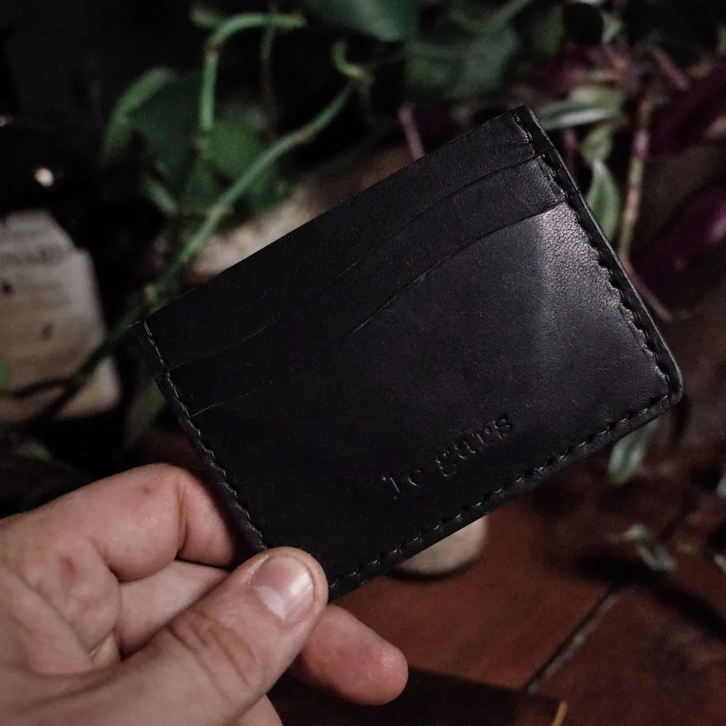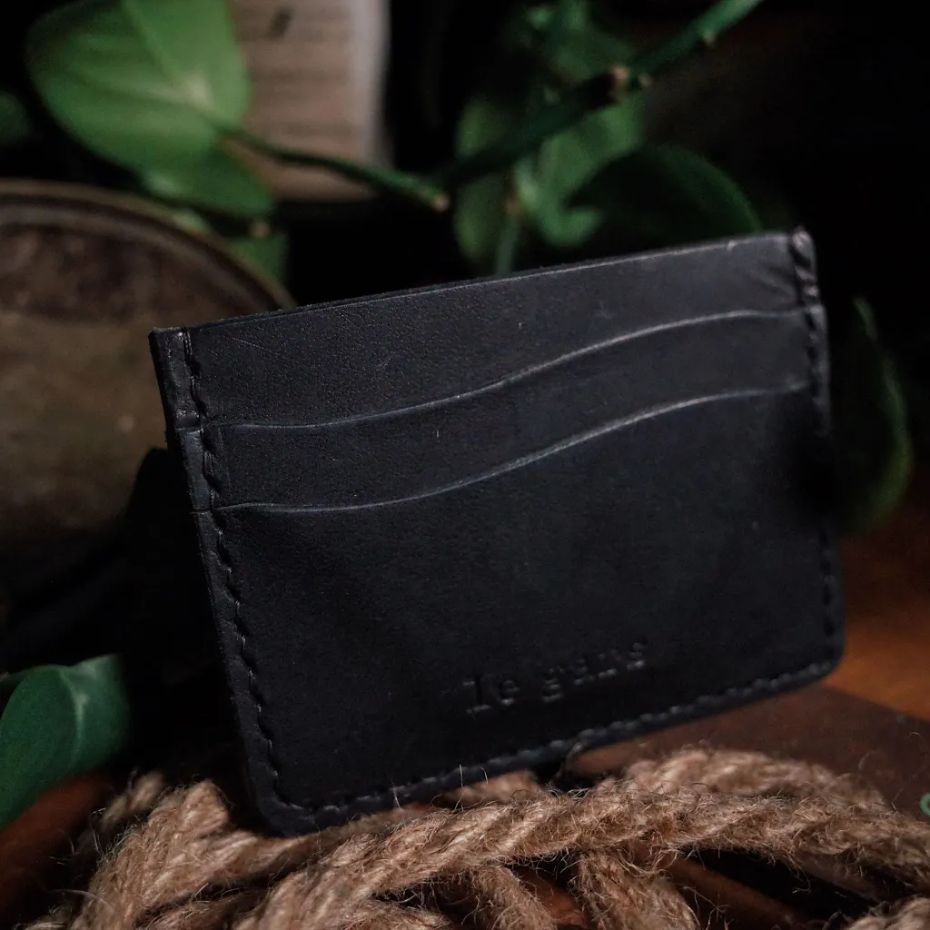 Parfois, des objets magnifiques et uniques sont présentés en petits lots. Cuir tanné végétal Horween de haute qualité. Quatre emplacements pour cartes et une poche centrale pouvant contenir jusqu'à six cartes se retrouvent dans ce petit portefeuille minimaliste.