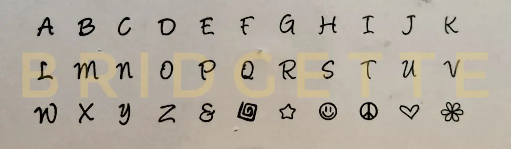 Tu peux choisir les symboles, initiales, lettres de ton choix !