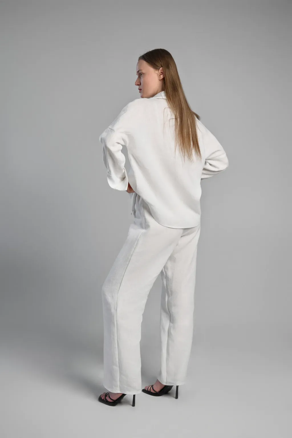 Ensemble en chanvre de haute qualité ( prêt-à-porter ) - un nouveau niveau de confort. Cette tenue légère et respirante se compose d'une chemise ample et d'un pantalon confortable à taille élastique.