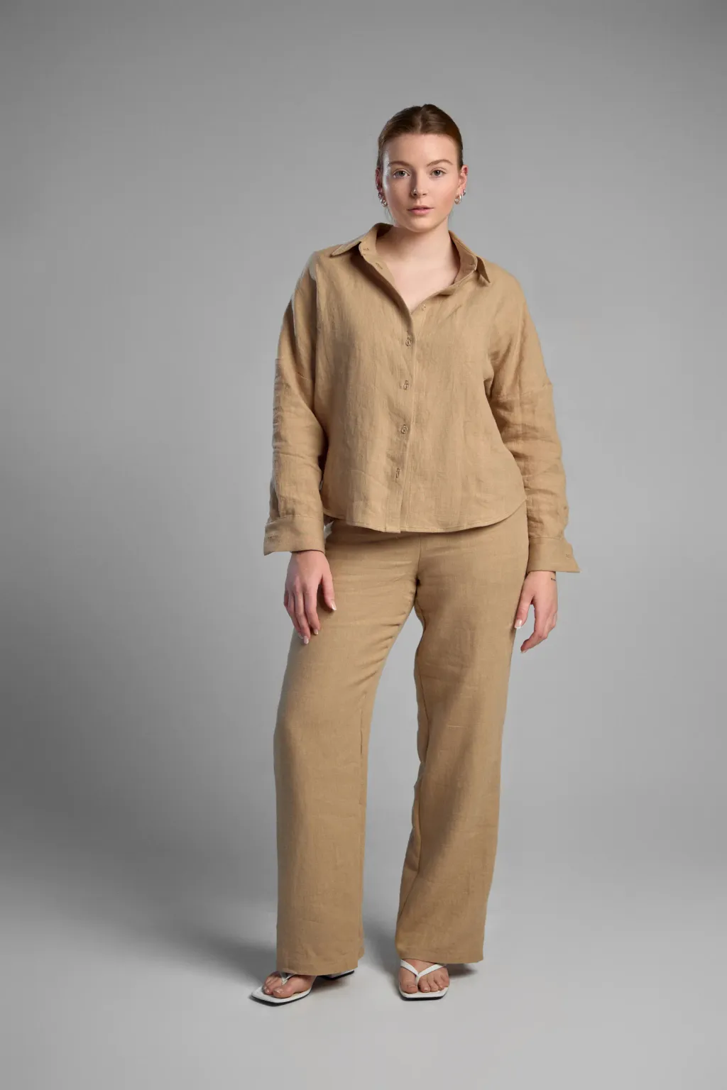 Ensemble en chanvre de haute qualité ( prêt-à-porter ) - un nouveau niveau de confort. Cette tenue légère et respirante se compose d'une chemise ample et d'un pantalon confortable à taille élastique.