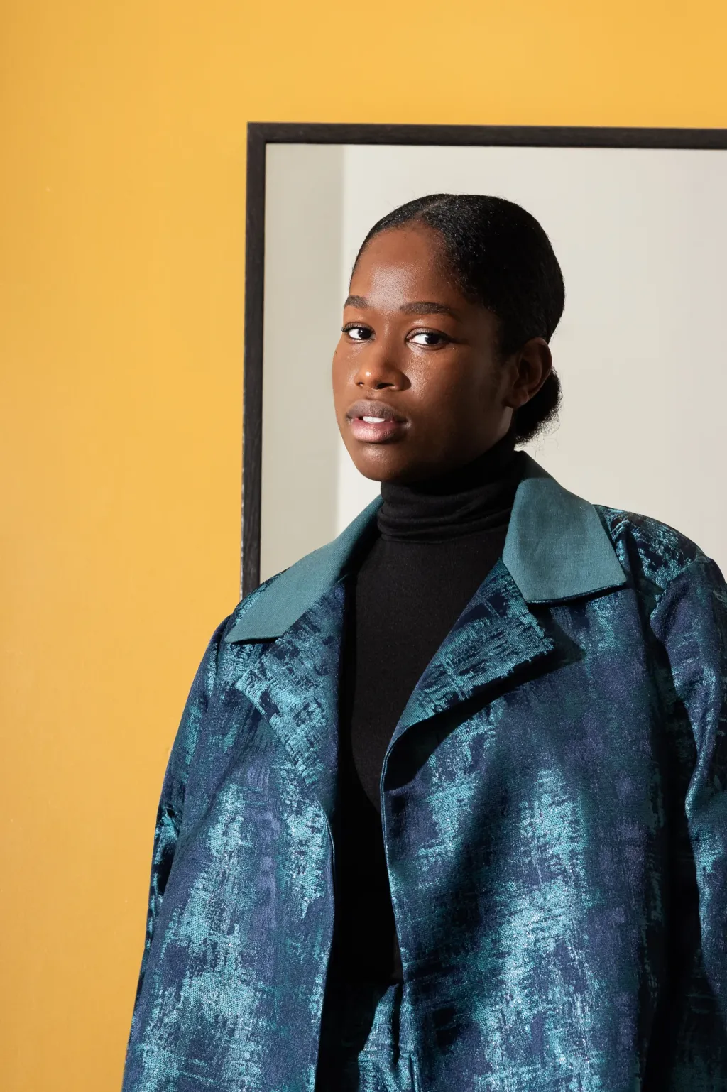 Parfaite pour une garde-robe professionnelle, la veste Ines est une combinaison en tissu jacquard à l'esthétique sophistiquée.