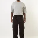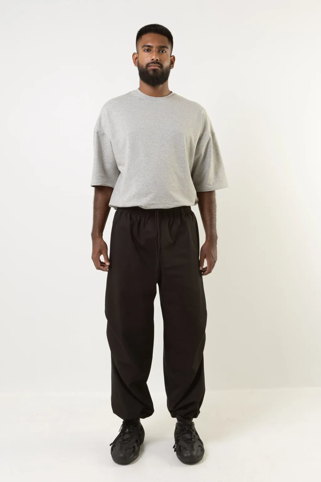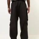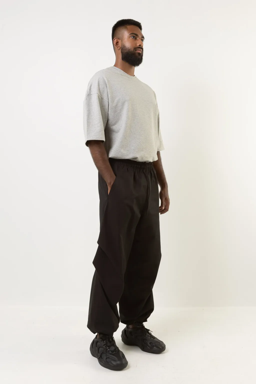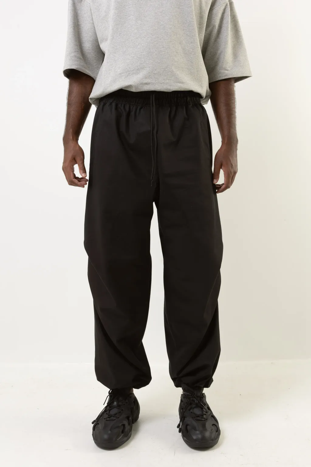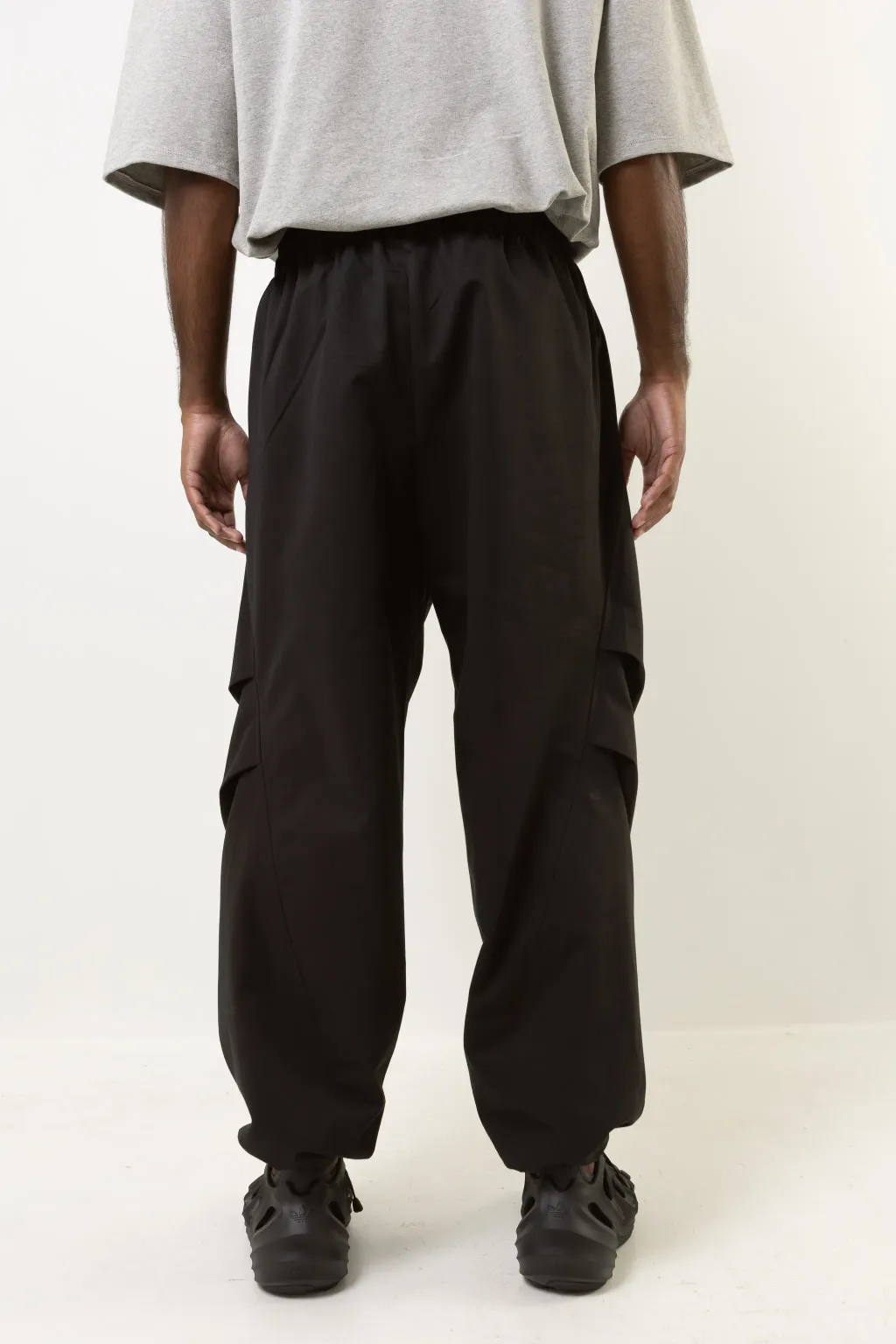 Pantalon à jambe large avec coutures latérales gauchies de style incliné et plis spectaculaires au niveau des genoux. Cordon de serrage réglable à l'ourlet.