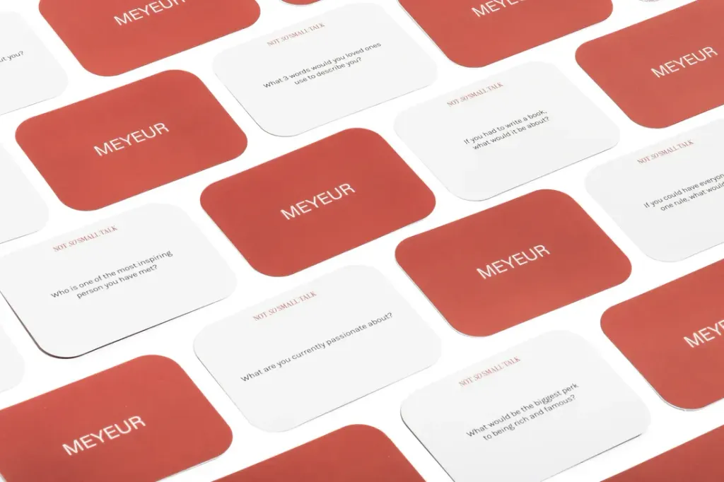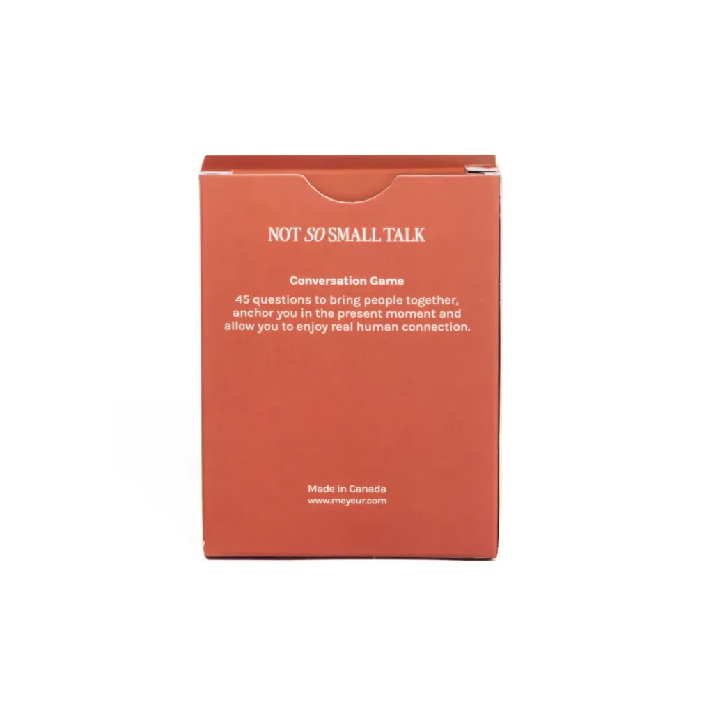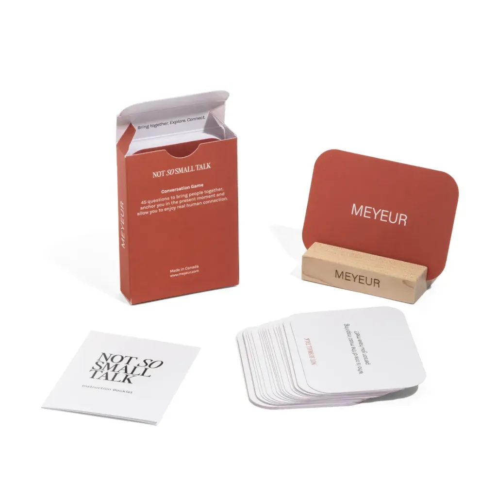Les humains qui t'entourent sont précieux. Prends le temps de les rassembler, de jaser, discuter avec eux, de les redécouvrir, d’approfondir vos connexions. NOT SO SMALL TALK est un outil de conversation pour t'aider à t'ancrer dans le moment présent.