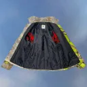 -Comporte une doublure composée de tissu matelassé noir et de laine carottée rouge et noir