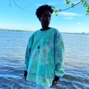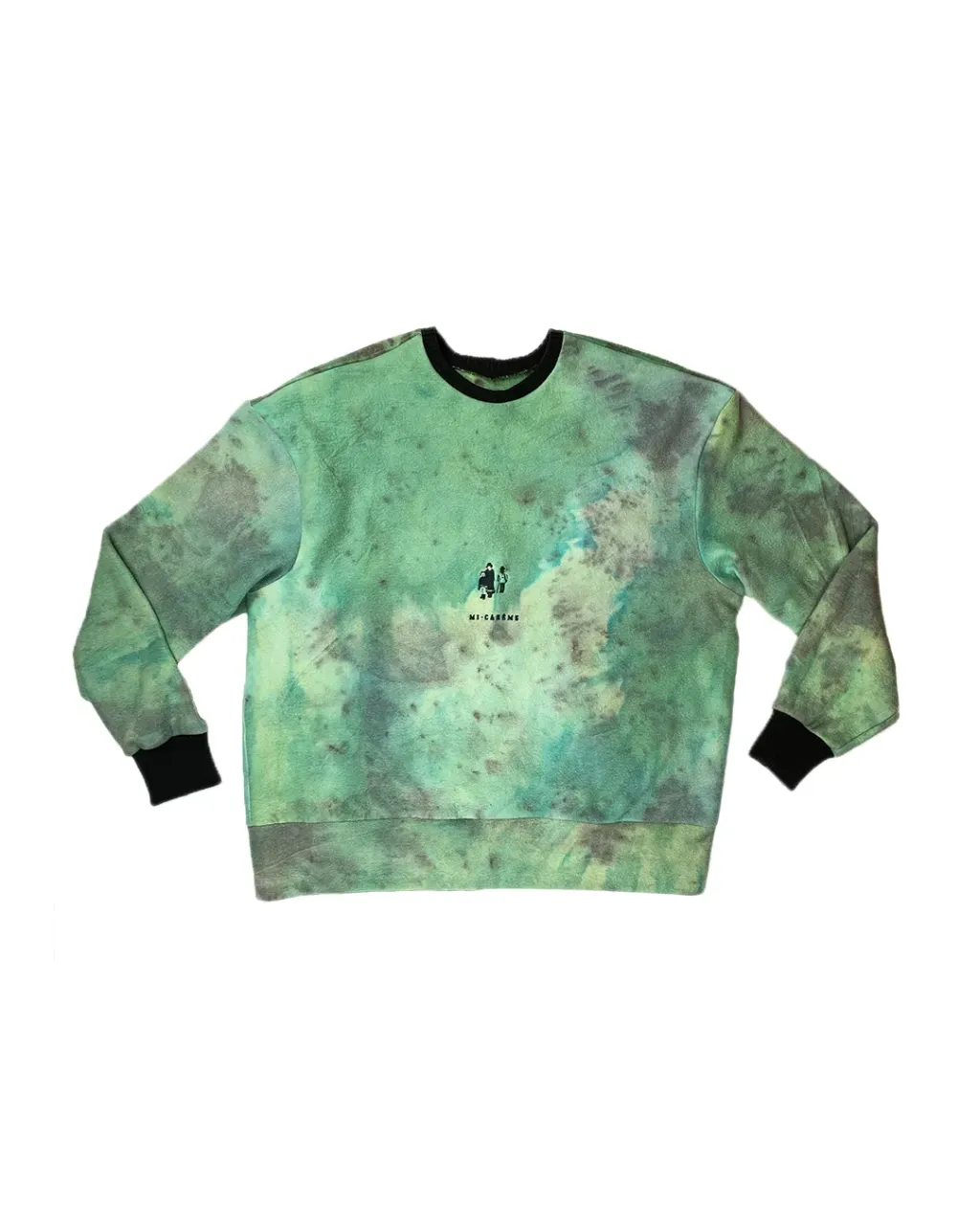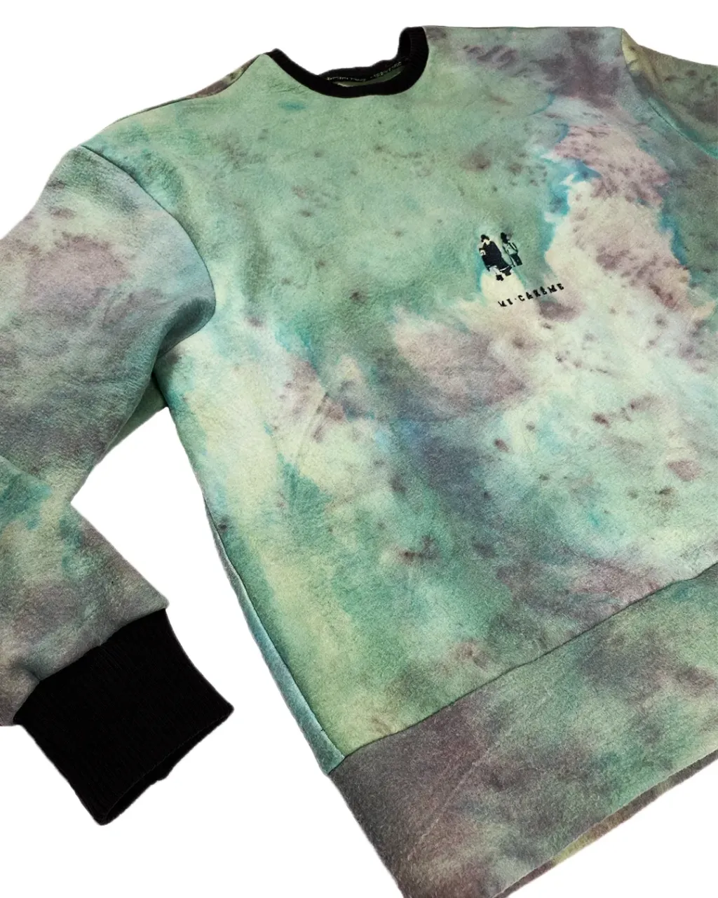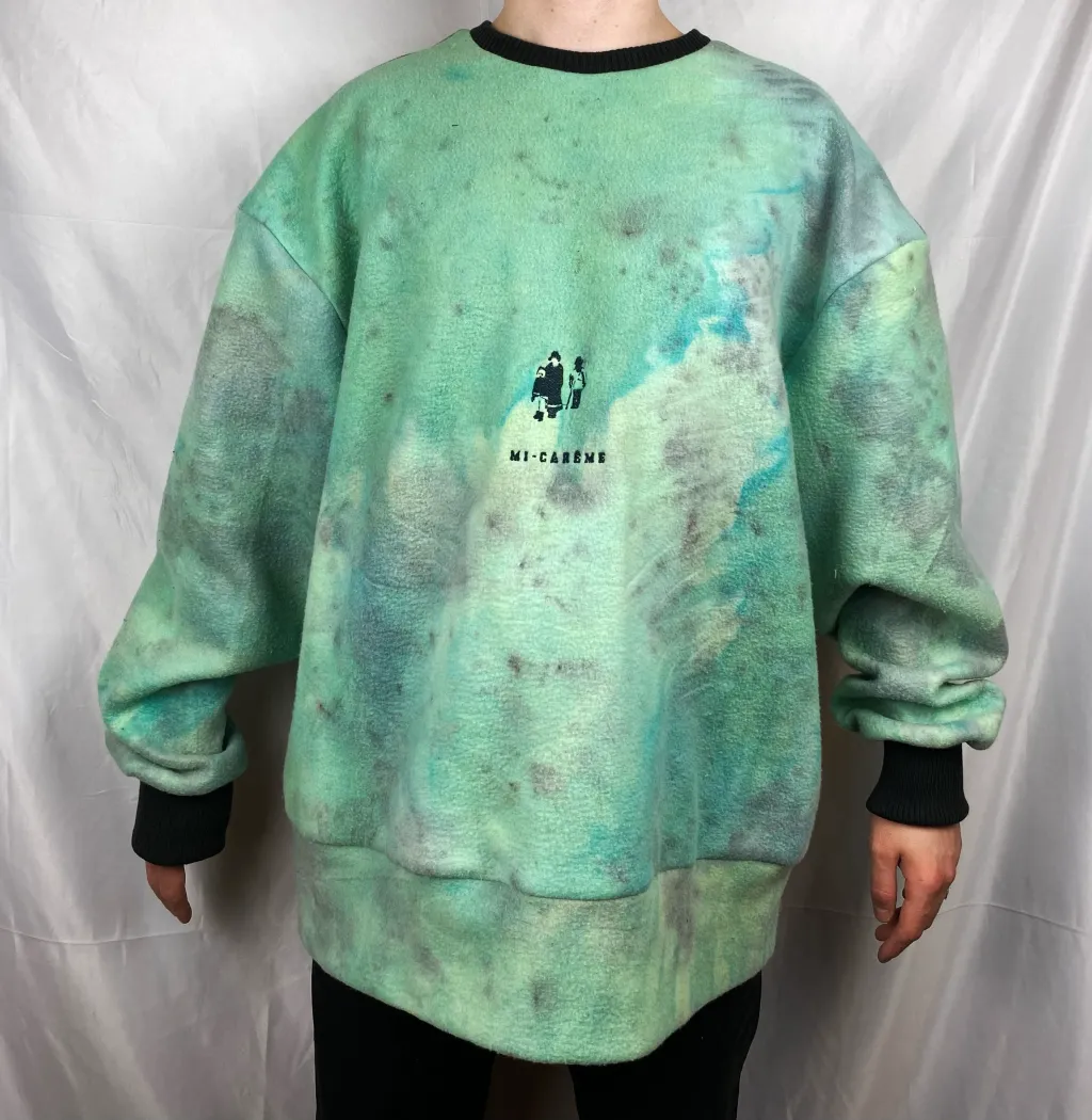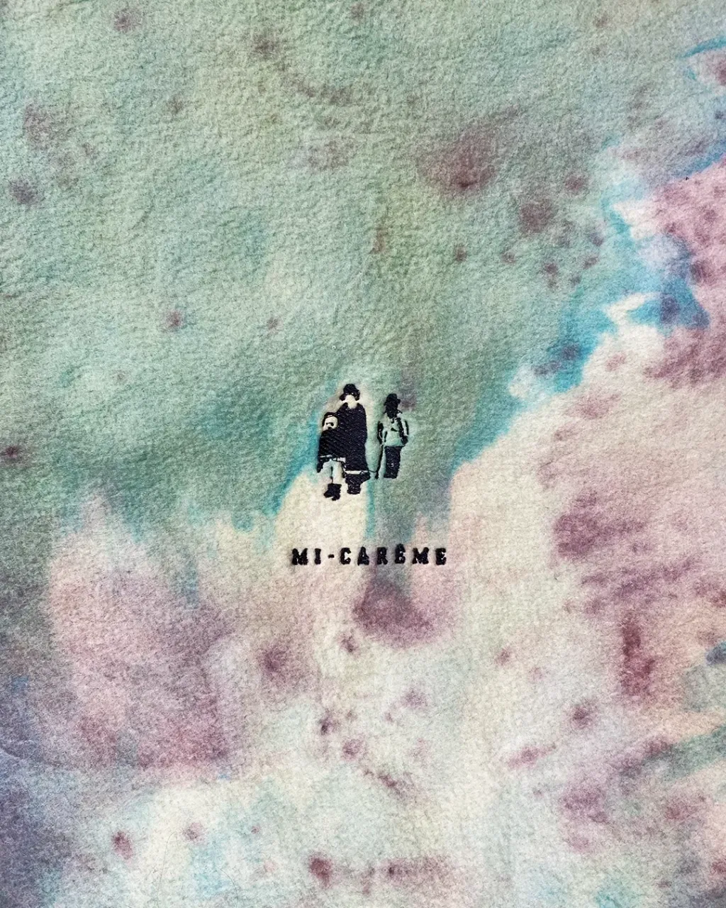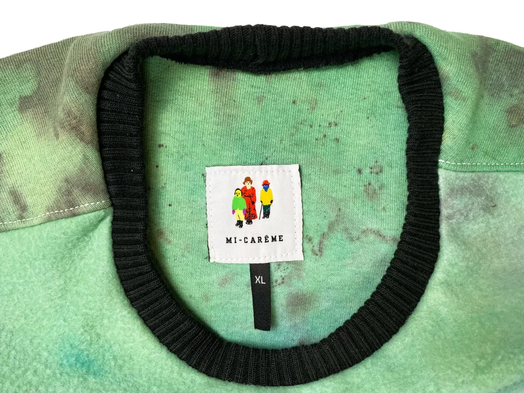 -Le tissu est ensuite enduit dans une teinture verte. Le tout résulte en un imprimé éthéré, rêveur et unique.