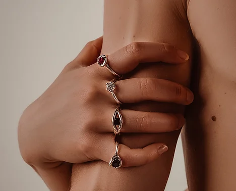 Une pièce à formes organiques, inspirée de l'état naturel de la pierre qu'elle tient.