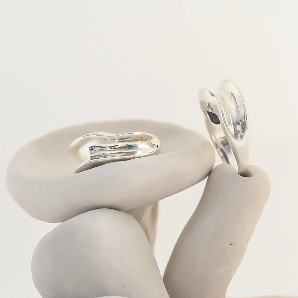 La bague Wave est une sculpture ondulée que l'on porte au doigt.