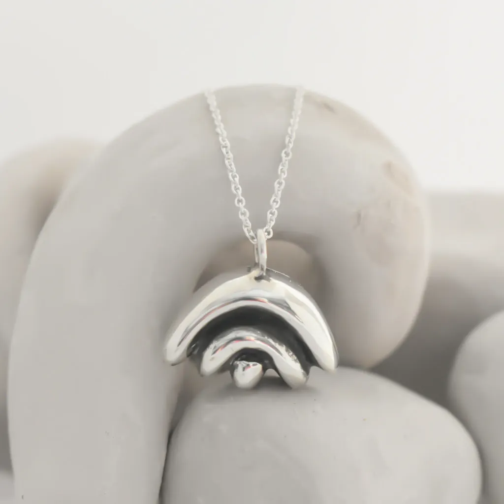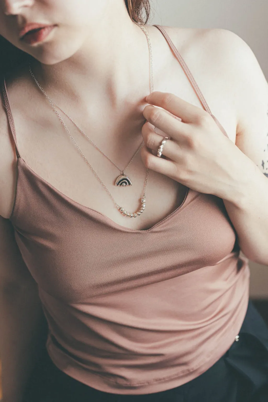 Un arc-en-ciel ludique, suspendu sur une chaîne en argent sterling.