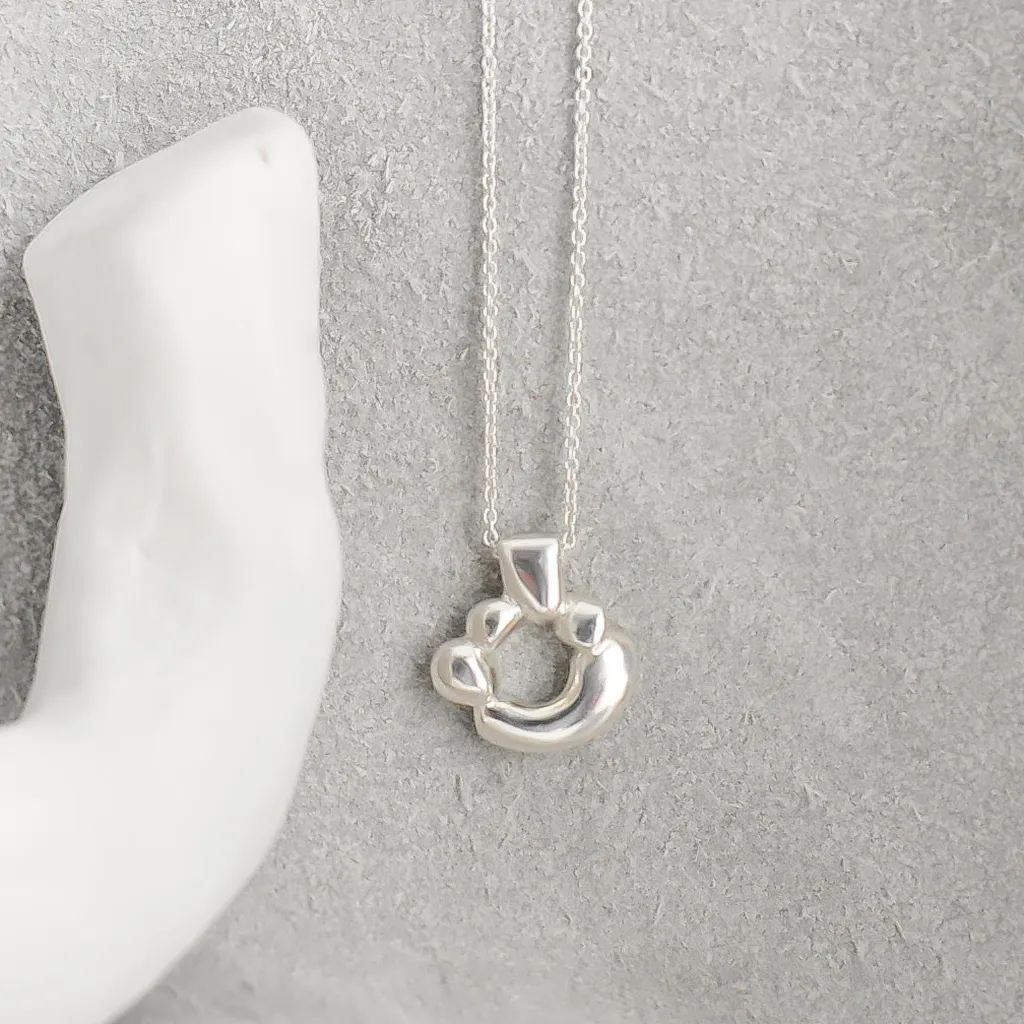 Ludique et sculptural, ce pendentif tridimensionnel est à la fois minimaliste et original.