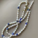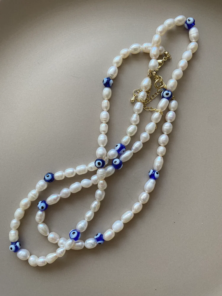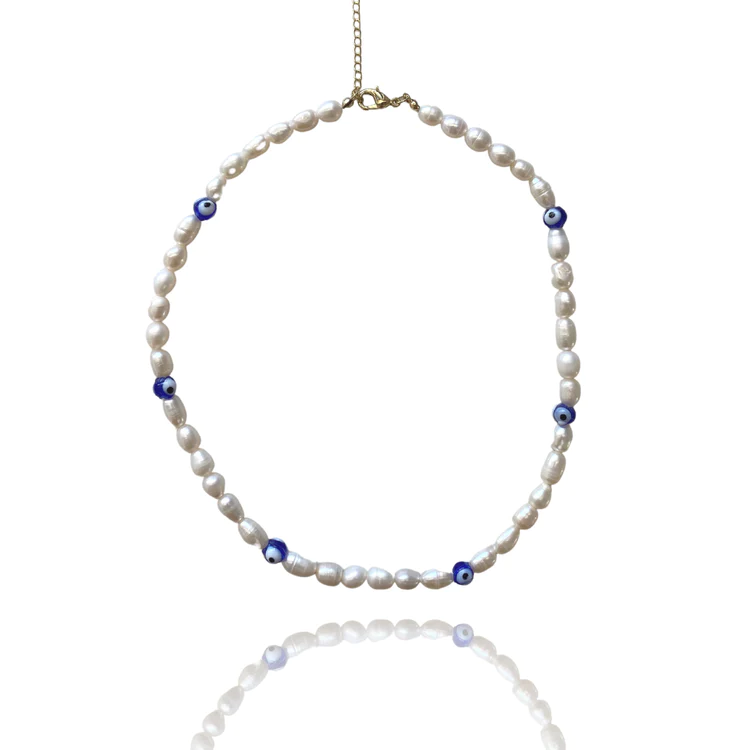 Protégez-vous des ondes négatives avec notre Collier Mykonos. À la fois stylé et protecteur, ce collier est doté de perles d'eau douce de haute qualité et de charmants œils maléfiques. Ce collier incontournable inspiré de la Grèce ajoute une touche de fun et de brillance à votre look.