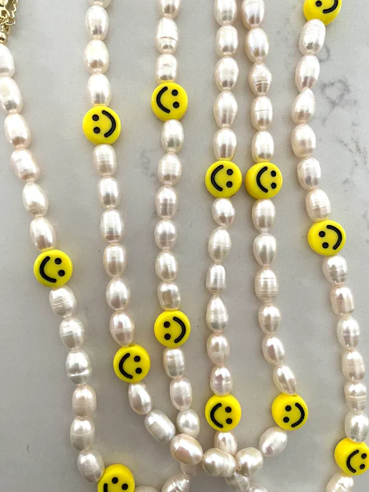 Voici votre rapelle de sourrire, mais d'une facon élegante. Ce collier de véritable perles d'eau douce donne une personnalité a votre tenue! Ajoutez une touche de fun n'importe quand!