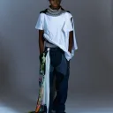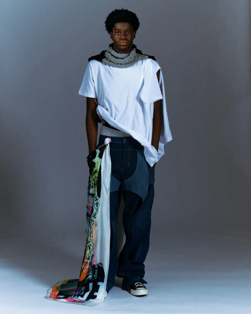 Foulard géant MRKNTN x TEETZ en sergé de soie à bords roulés. Imprimé avec MRKNTN x TEETZ : Twilight. Enroulez-le autour du cou, portez-le comme foulard, sur votre corps comme robe ou comme œuvre d'art sur votre mur.