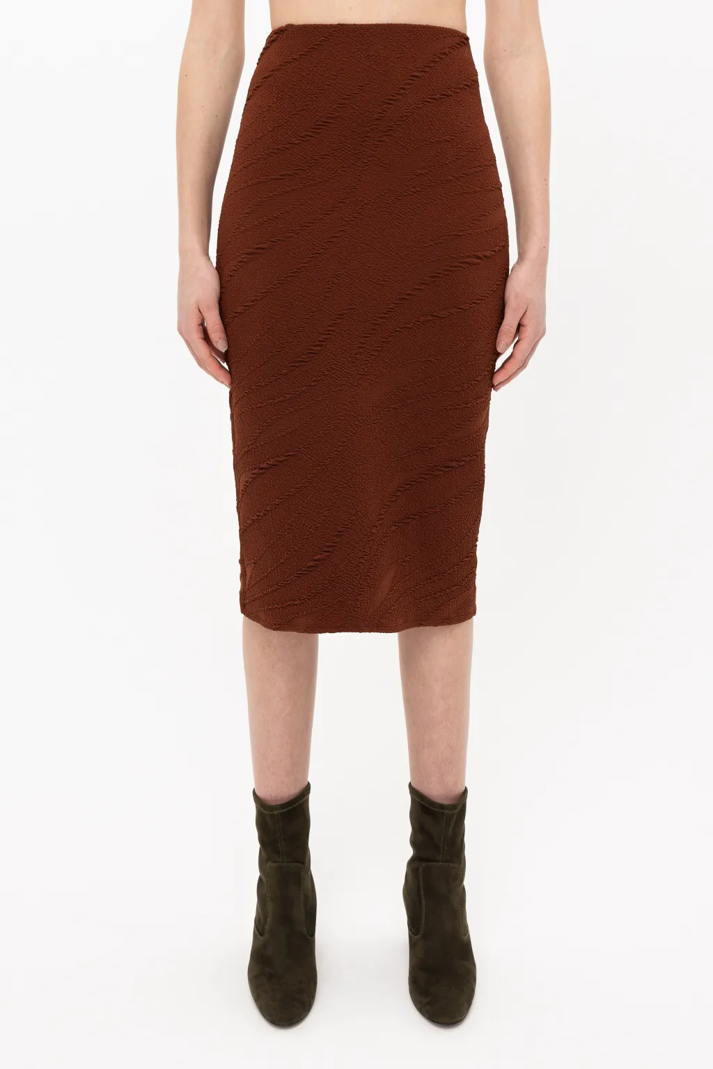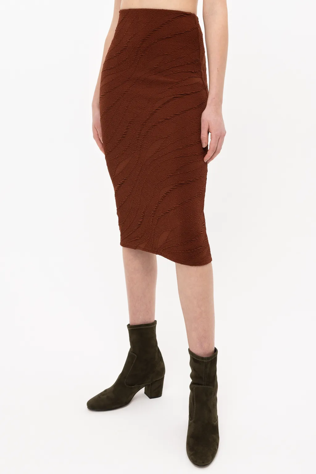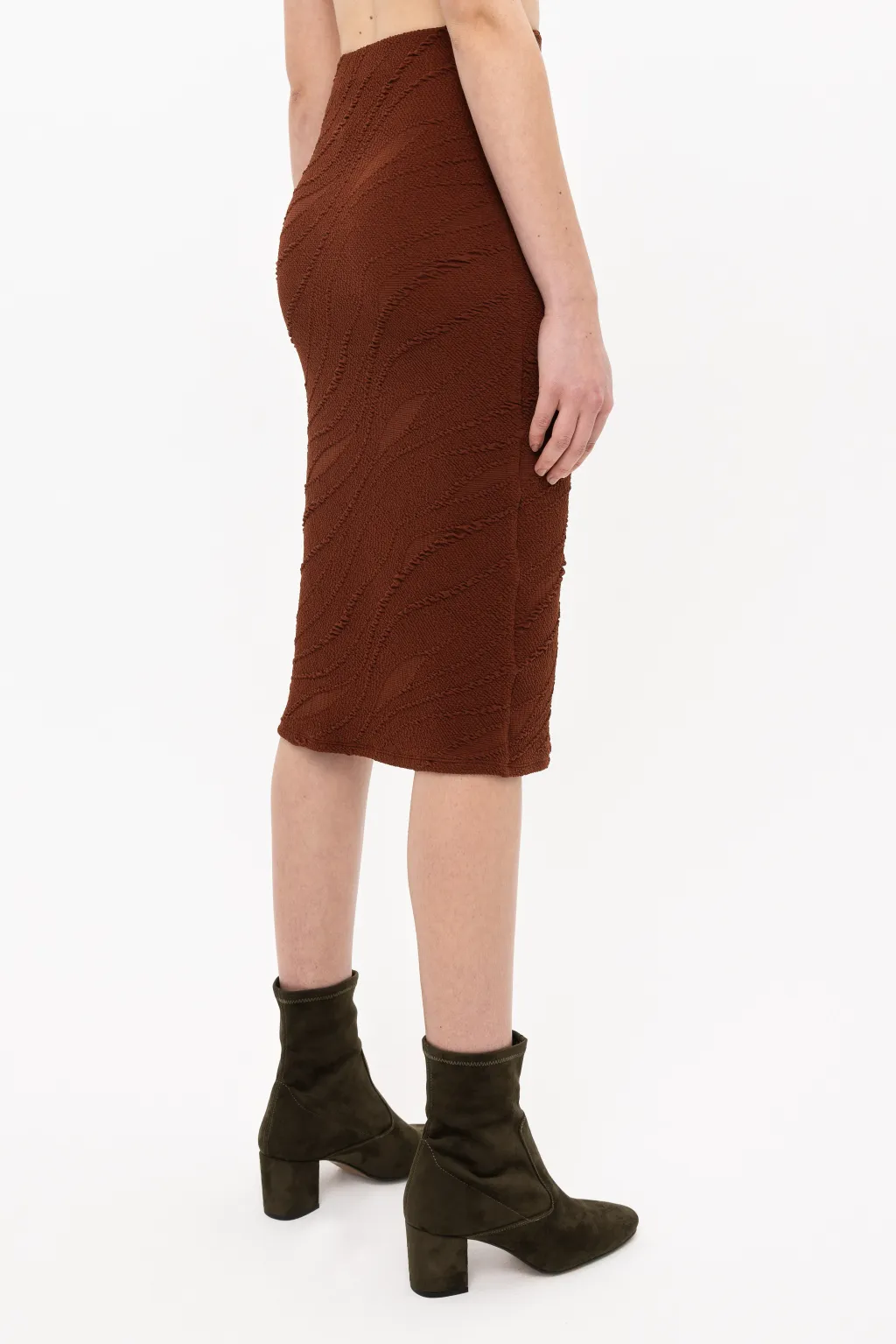 Capturez l'essence de l'automne avec notre jupe JOY. Une magnifique coupe crayon qui évoque la chaleur de la saison. Confectionnée dans un somptueux jacquard aux nuances sienne-brûlée tourbillonnantes, JOY incarne le charme de l'automne. Pour un ensemble parfaitement coordonné, associez-la avec notre top JOLLY !
