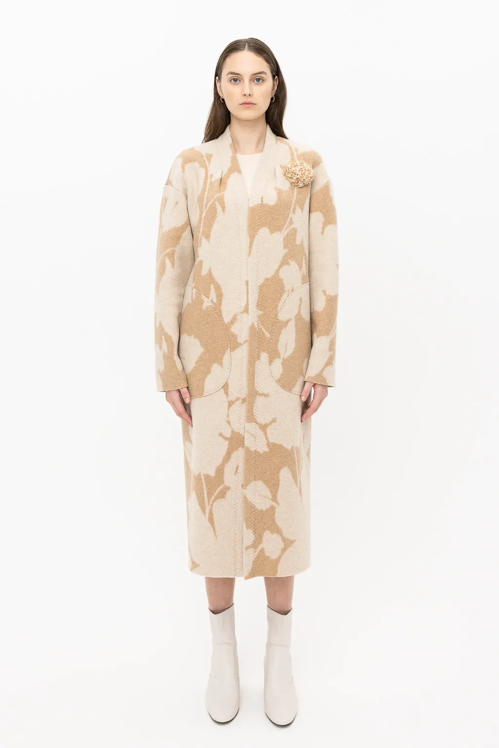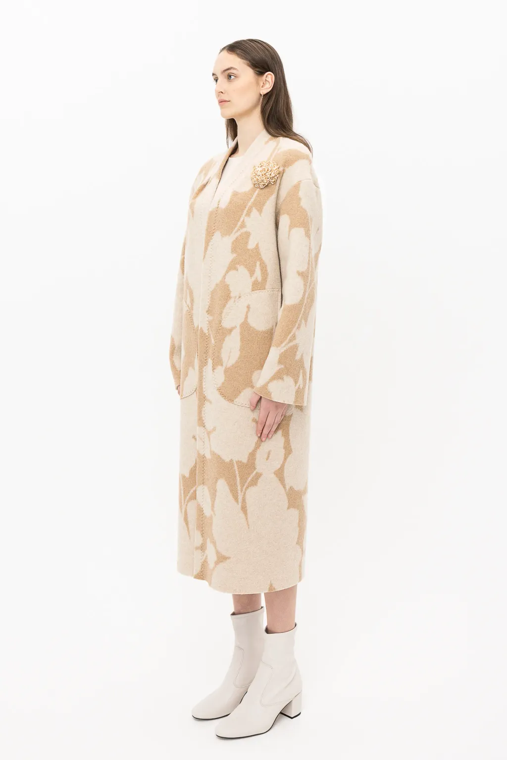 Les manteaux en laine évoquent inévitablement l'automne, et notre pièce transitionnelle par excellence, INEZ, est confectionnée dans un tissu en laine beige orné de motifs de fleurs silhouettées. La teinte beige offre une transition subtile entre la fin de l'été et le début de l'automne, tandis que le motif floral stylisé rappelle les feuilles d'été qui commencent à tomber. Avec INEZ, embrassez le charme de la saison dans un manteau qui allie élégance et transition en toute simplicité.