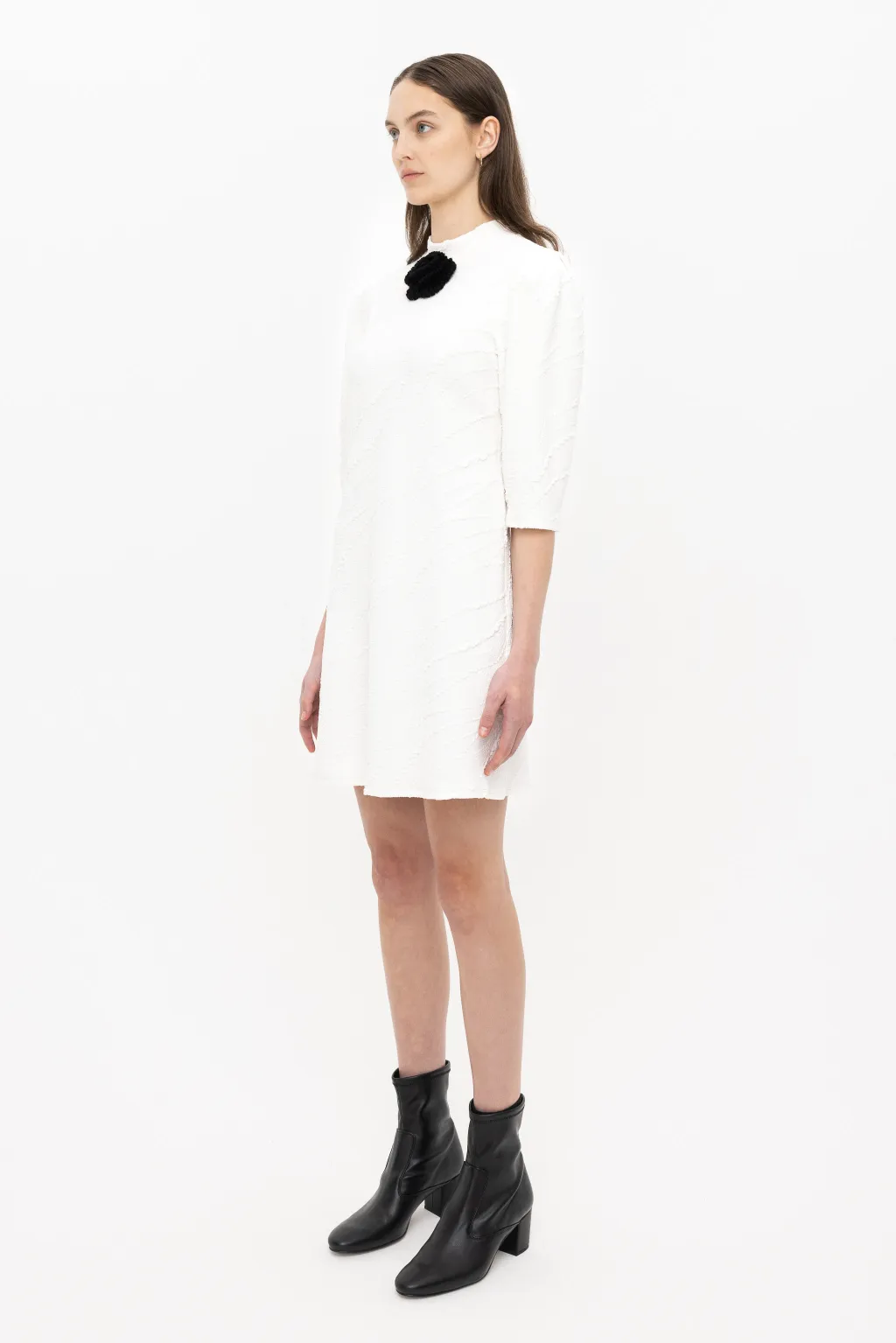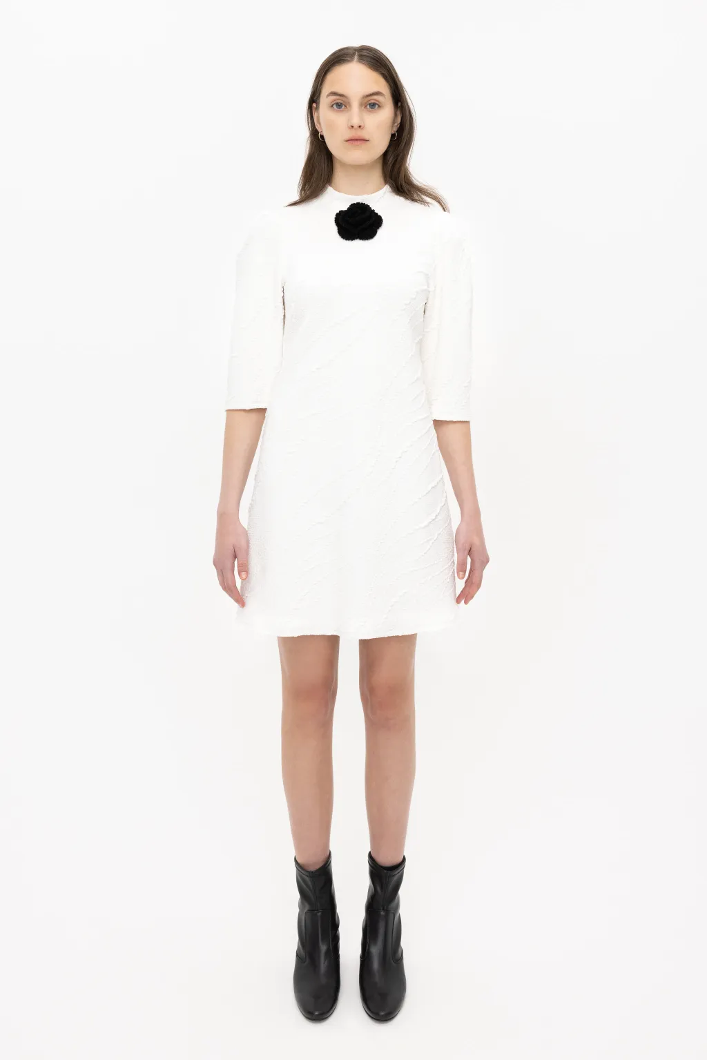 FRANCE, notre robe droite, incarne l'élégance universelle et flatteuse. Conçue pour offrir aisance et confort, elle maintient néanmoins une silhouette soigneusement moulée qui met en valeur la forme du corps. Ornée d'une délicate fleur tricotée appliquée au col et de demi-manches bouffantes, cette pièce allie raffinement et décontraction avec une touche de féminité subtile. Une robe qui garantit un style impeccable sans sacrifier le bien-être.