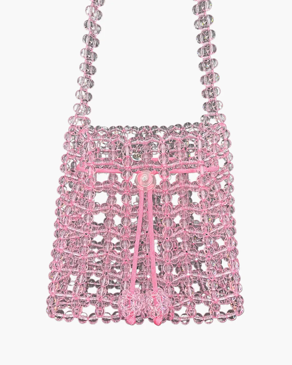 Polly est composé de plus de 960 perles tissées à la main et est orné d'un cordon ajustable et de deux boules de cristal. Choisissez entre une ganse courte ou longue en perles.