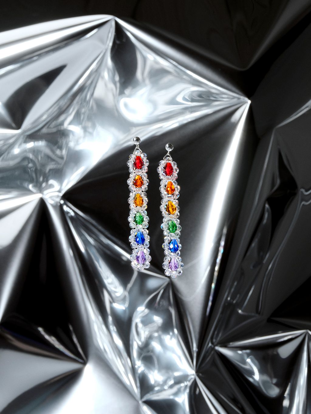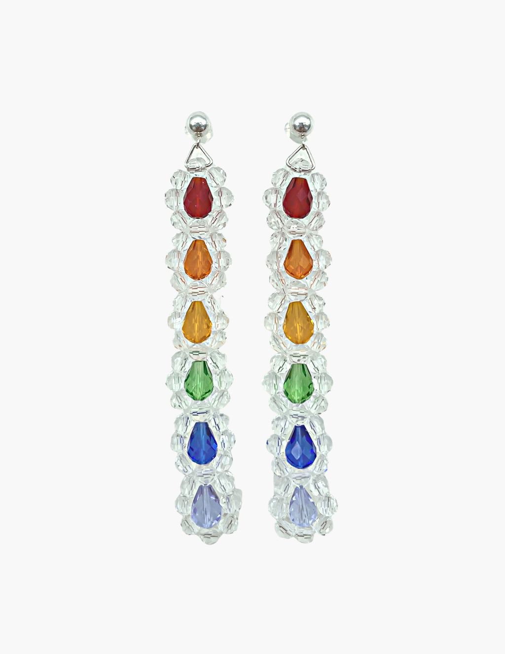 Boucles d'oreilles faites à la main argent sterling 925 et cristaux aux couleurs de l'arc-en-ciel✨