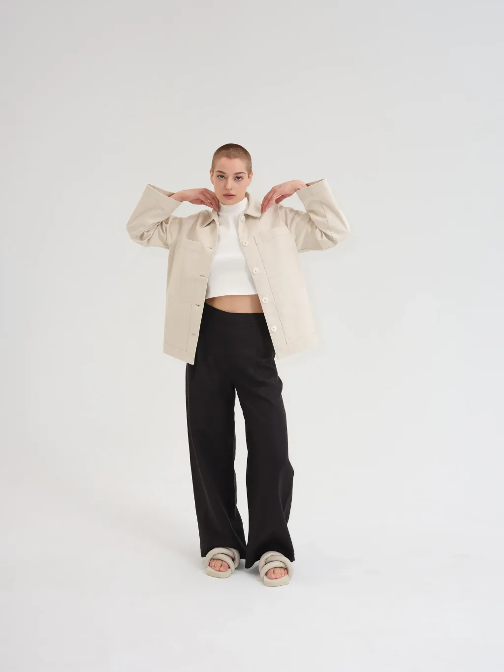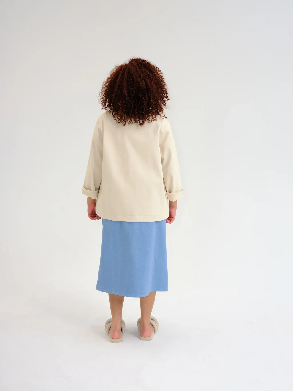Le FUGAZZI est de retour à la demande générale, cette fois dans un beau denim naturel, juste à temps pour le printemps. Fidèle à sa version précédente, les doubles poches avant allient style et fonctionnalité. Nous avons trouvé ce tissu à Montréal et en avons une quantité très limitée, nous vous suggérons donc d'agir rapidement si vous avez raté votre chance d'obtenir la version bleue la saison dernière et attendiez patiemment notre prochaine version car elle ne durera pas! Nous vous garantissons qu'il s'associera avec à peu près toutes les pièces que vous possédez déjà!