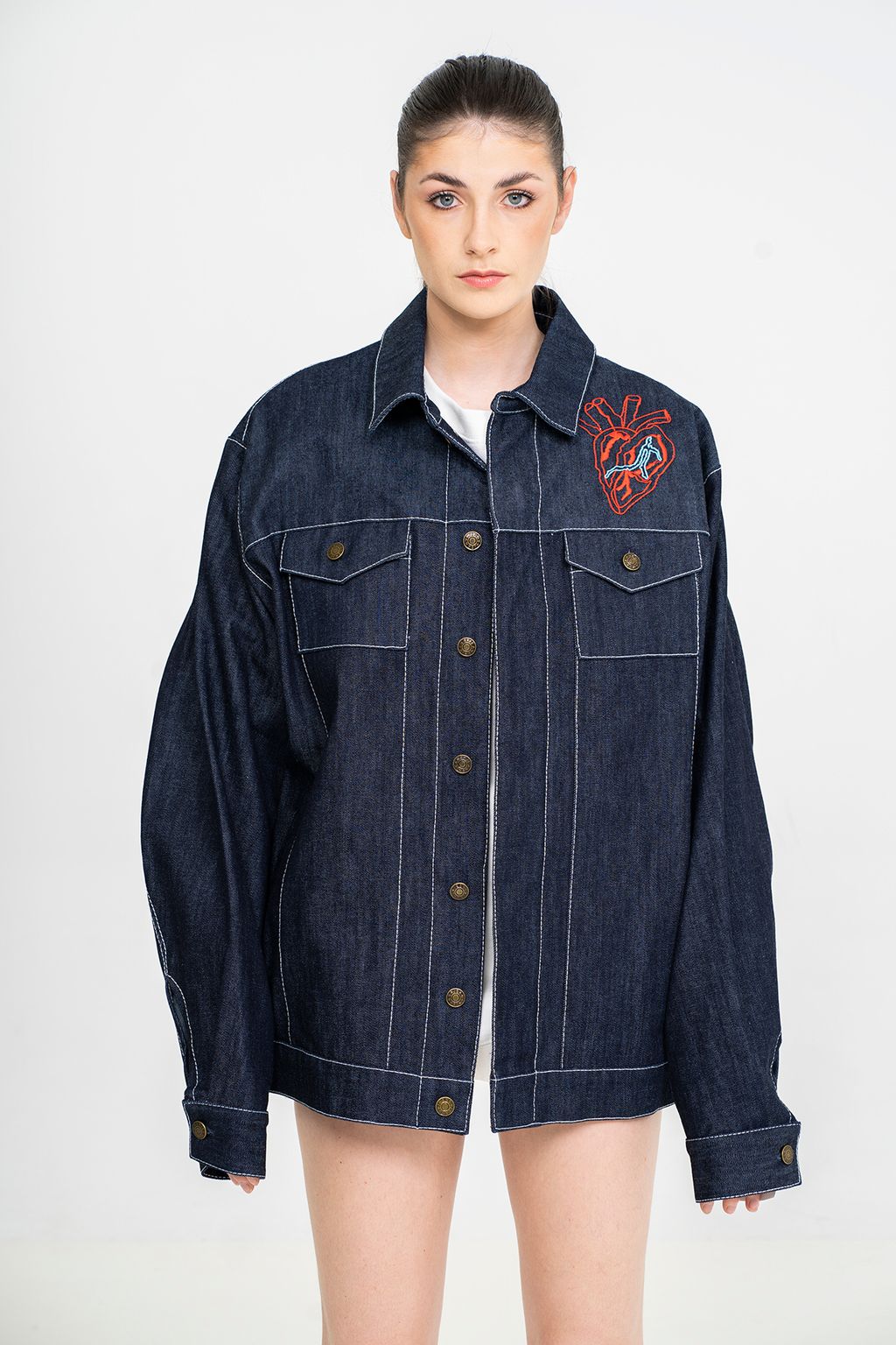 Parfaitement fabriquée à Montréal, cette veste en denim est un must pour compléter tout style urbain. Portez-la avec des jeans, des pantalons de survêtement, du cuir, du coton, du nylon, le ciel est la limite pour créer le look parfait qui s'harmonise avec cette pièce de denim étonnante.