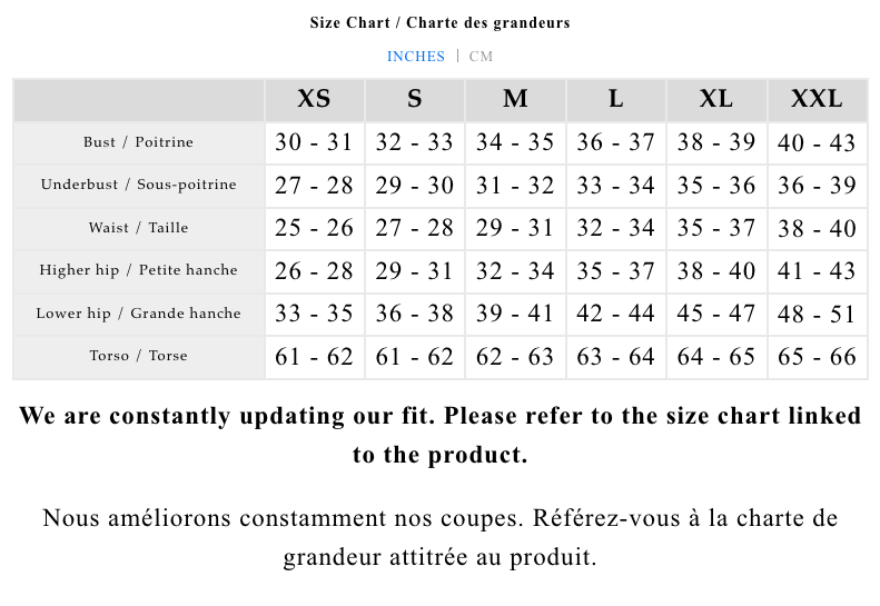 Enora mesure : 34" poitrine et 29" sous poitrine. Elle porte la grandeur M.