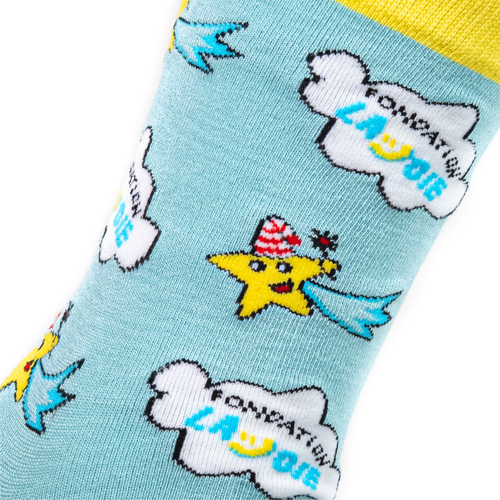La chaussette Rêve d'enfant une collaboration entre Sokette et la fondation Lajoie.