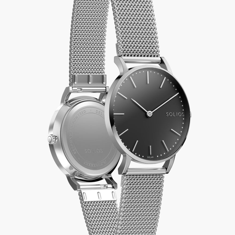 Genèse des montres Solios, la Solar Classique est la preuve indéniable qu'il est possible de combiner à la fois élégance, technologie verte et matériaux durables. Notre boîtier en acier inoxydable recyclé de 8 mm d'épaisseur est surmonté du look le plus minimaliste qu'une montre solaire puisse offrir. Le verre minéral durci est recouvert d'un robuste revêtement en cristal de saphir pour limiter les rayures. Au cœur, une cellule solaire permet à la montre de se recharger toute seule et offre une réserve d'énergie de 6 mois. En plus de promouvoir la mode responsable avec style, vous n'aurez jamais à changer votre pile.