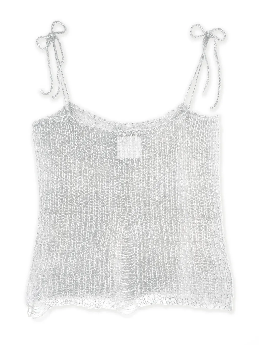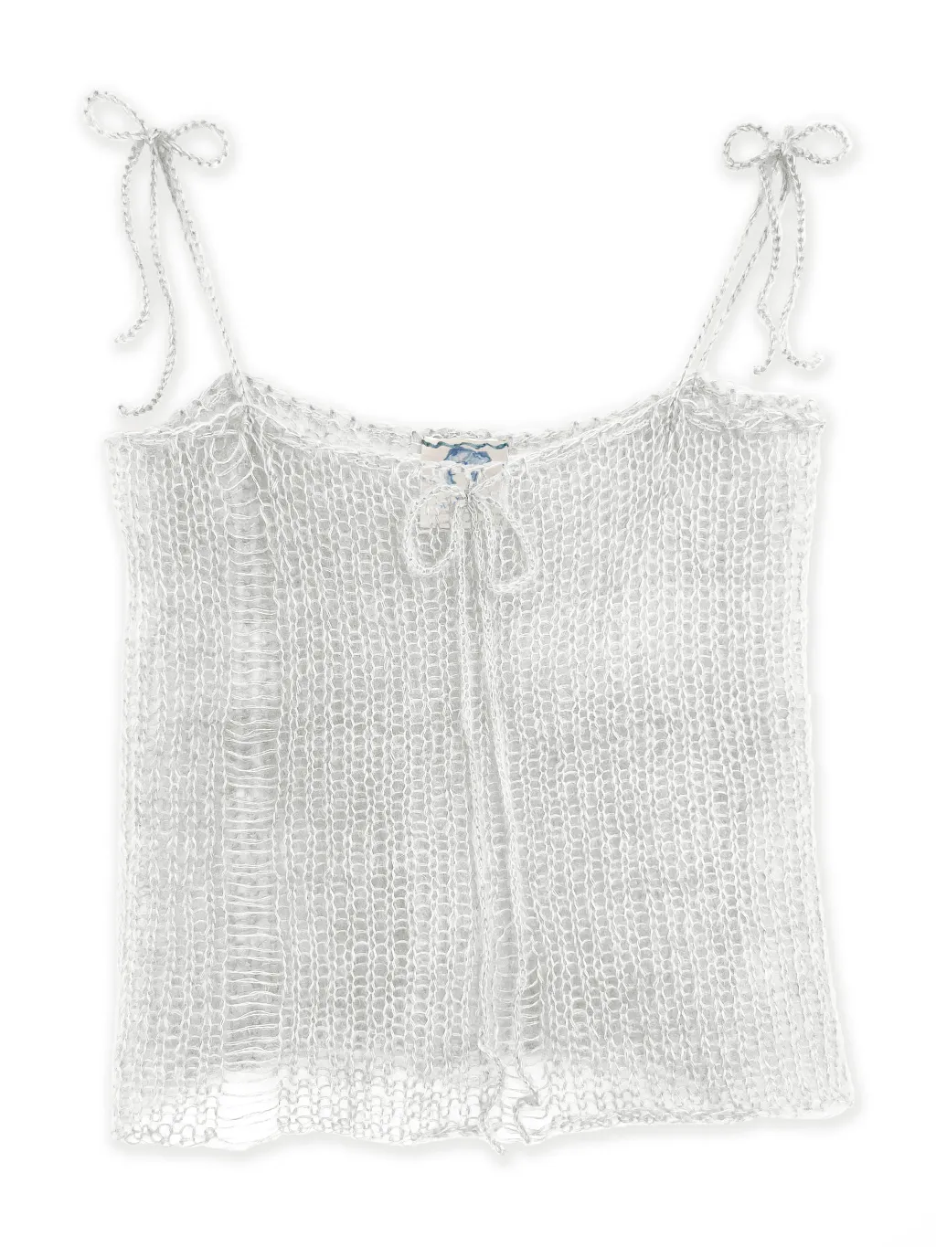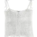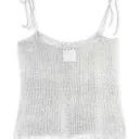 Camisole ample tricotée à la main avec fermeture à cordon ajustable au-devant. Comprends des bretelles d'ajustements à l'avant et l'arrière des épaules. Cet article peut être porté comme haut, jupe, ou châle à capuche.