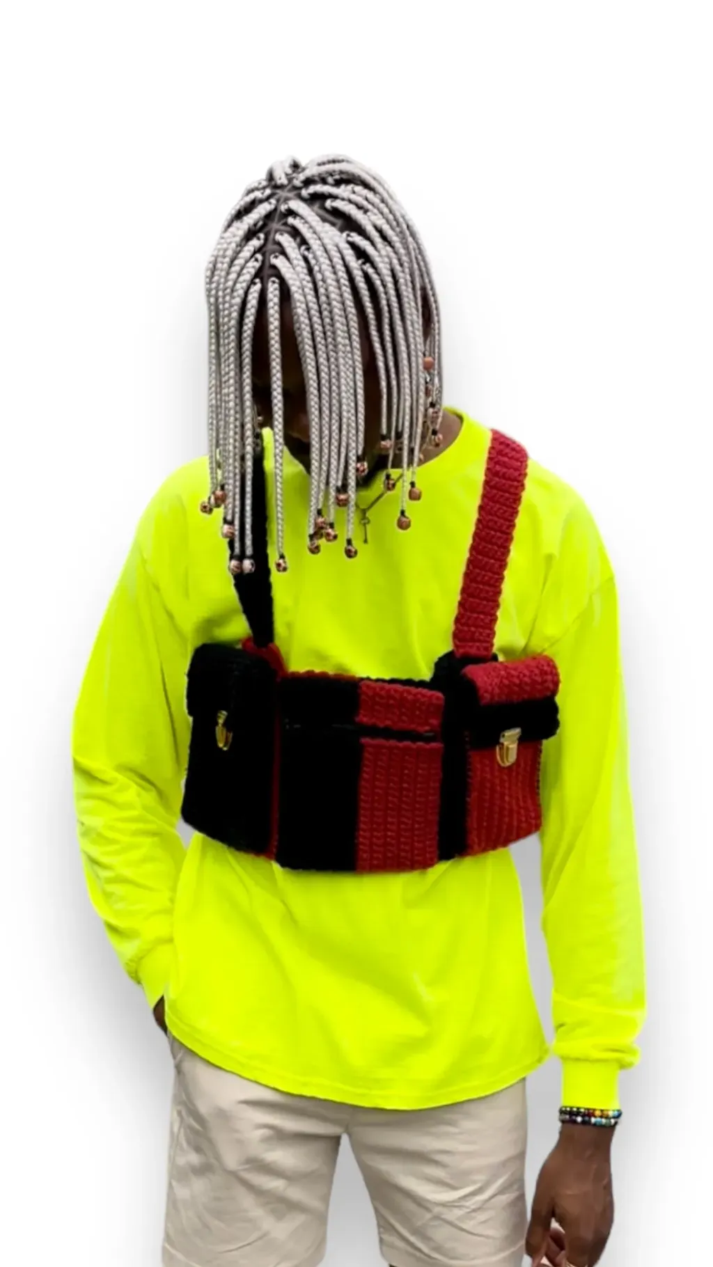 Ce sac gilet en crochet est parfait pour une soirée avec la bande, faire des déclarations et tout simplement se démarquer. Crocheté et doublé pour être assez épais pour contenir tous vos objets de valeur (clés, téléphones, cartes, etc.) sans que vous ayez à vous soucier que quelque chose tombe ou glisse.