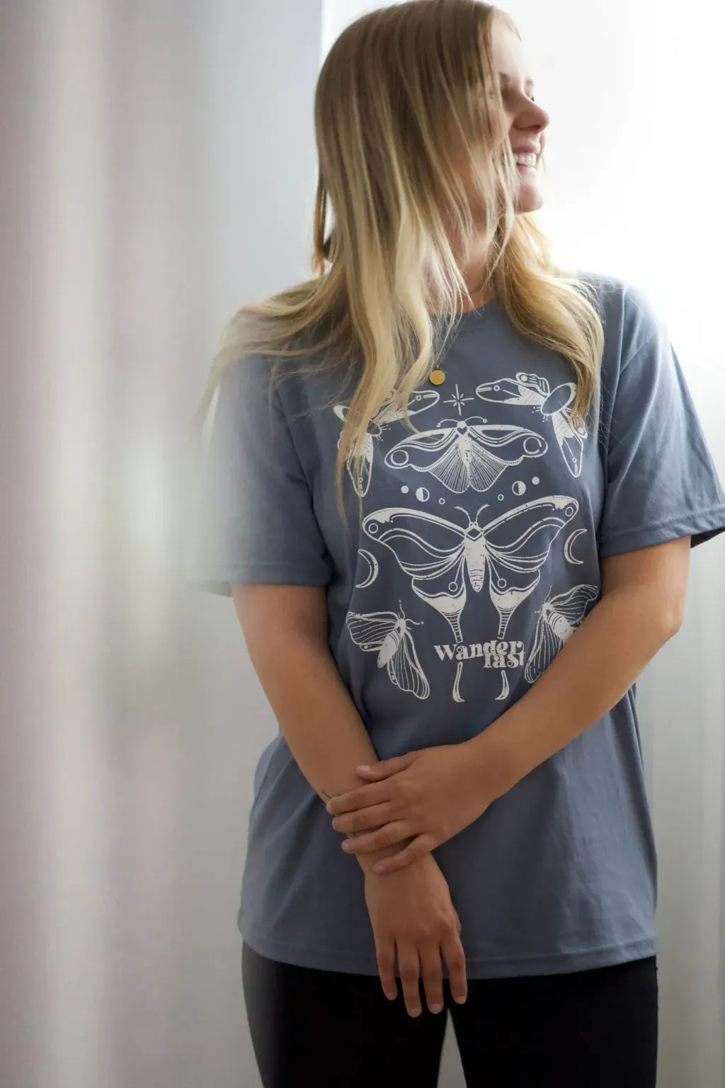 Symbole, entre autres, de liberté, de beauté et de métamorphose, le papillon est un insecte très particulier et il était important qu'il soit mis de l'avant chez Wanderlast.